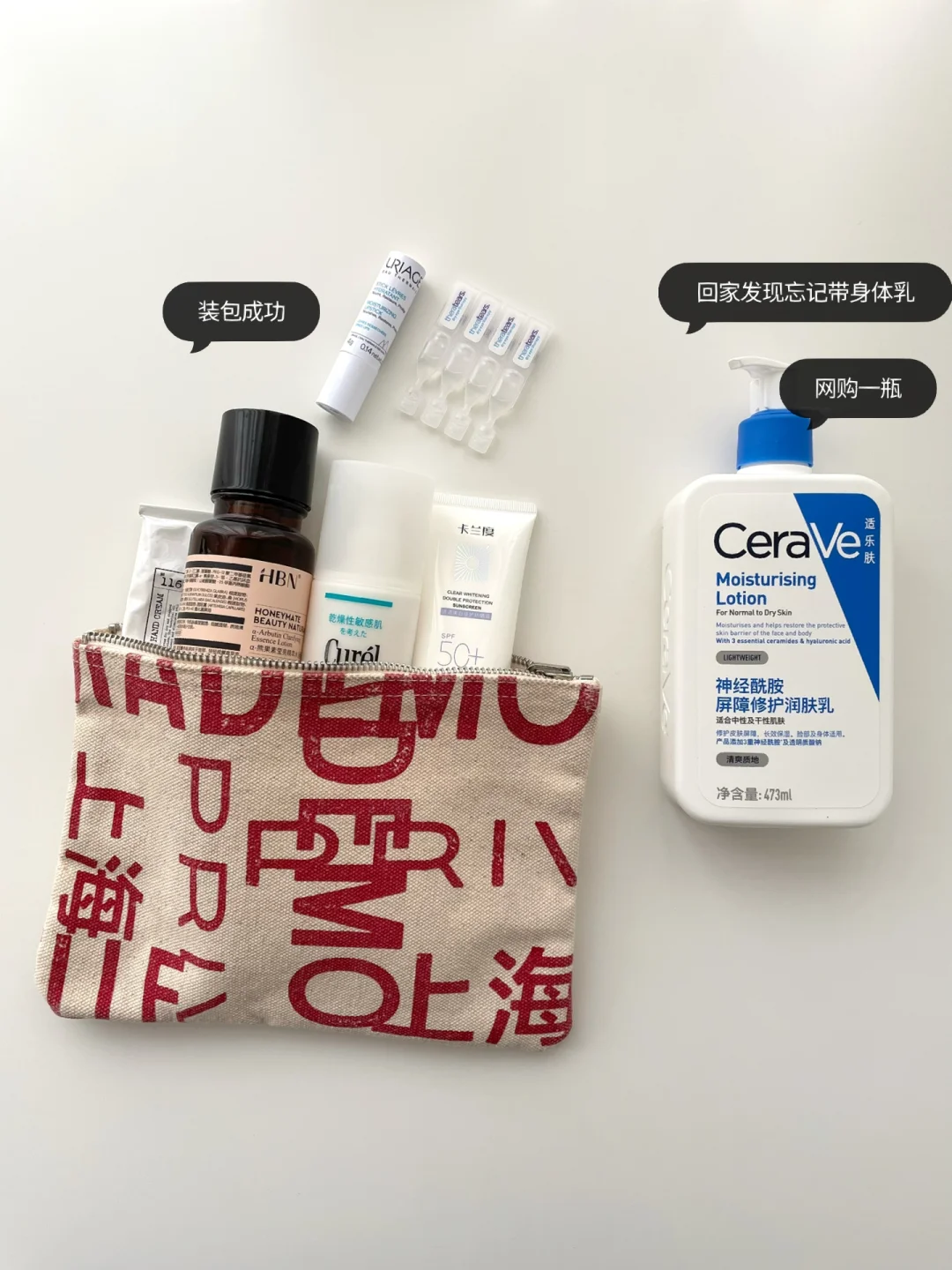这次回家我随身带护手霜和润唇膏,其他护肤品都是之前分享过的。极简护肤,一个小袋子能塞进去我用的。春节期间家人热情招待,我吃到脸上长痘痘了,易上火体质,回来清淡饮食走起。