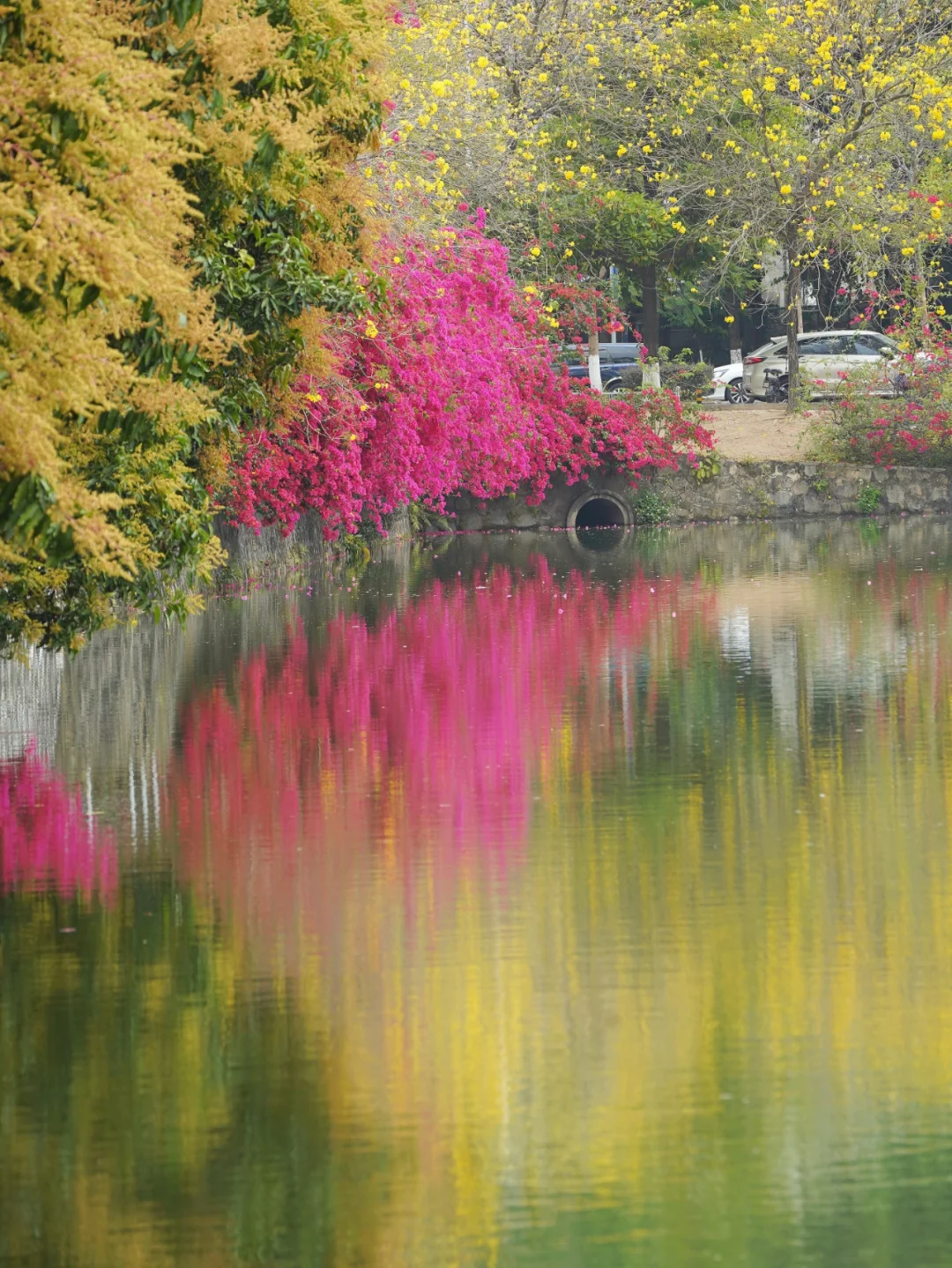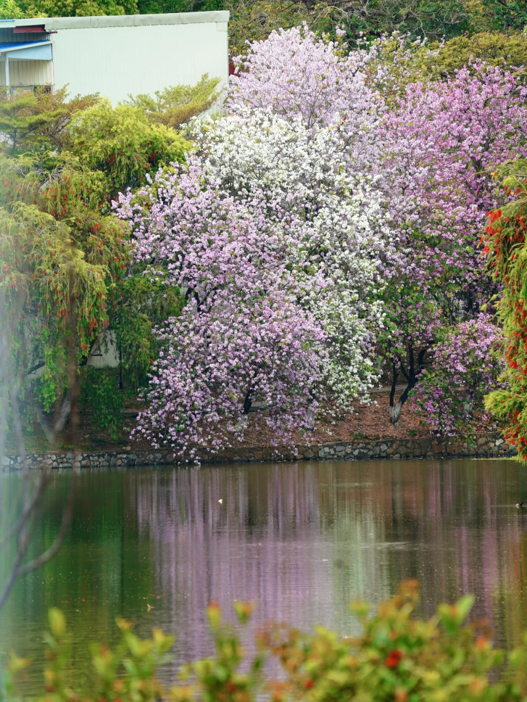 华农的花其实围绕在行政楼,真的足够我看一个下午了,而且潘阳湖那边还有很多花与湖融合的美景,每一处看起来都很适合打卡拍照哦。