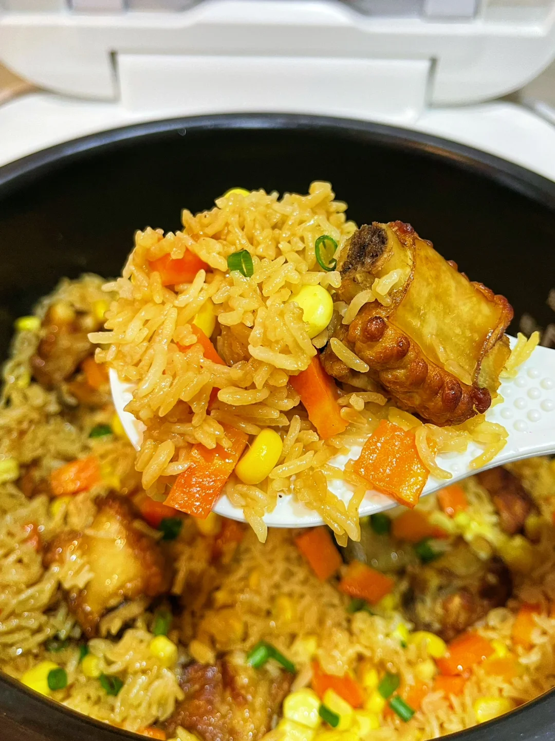 有饭有菜又有肉,一口满足所需营养,专治不爱吃饭的小屁孩。排骨鲜香入味,米饭饱满喷香,0技巧,超适合懒人和厨房小白