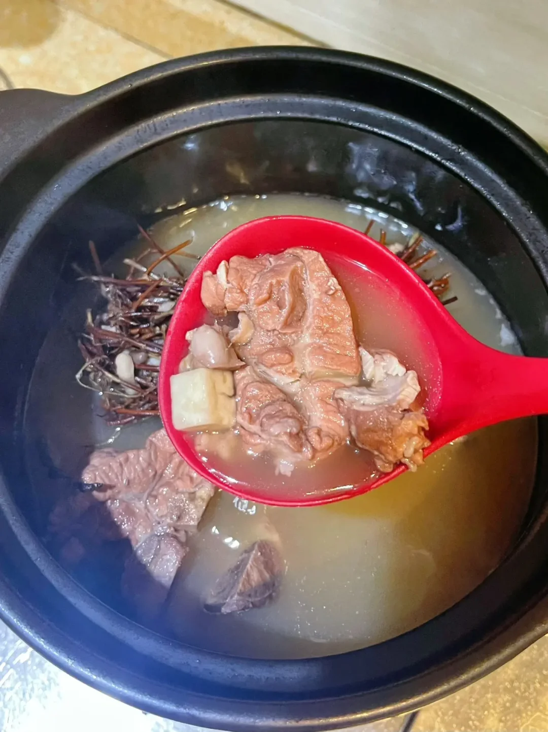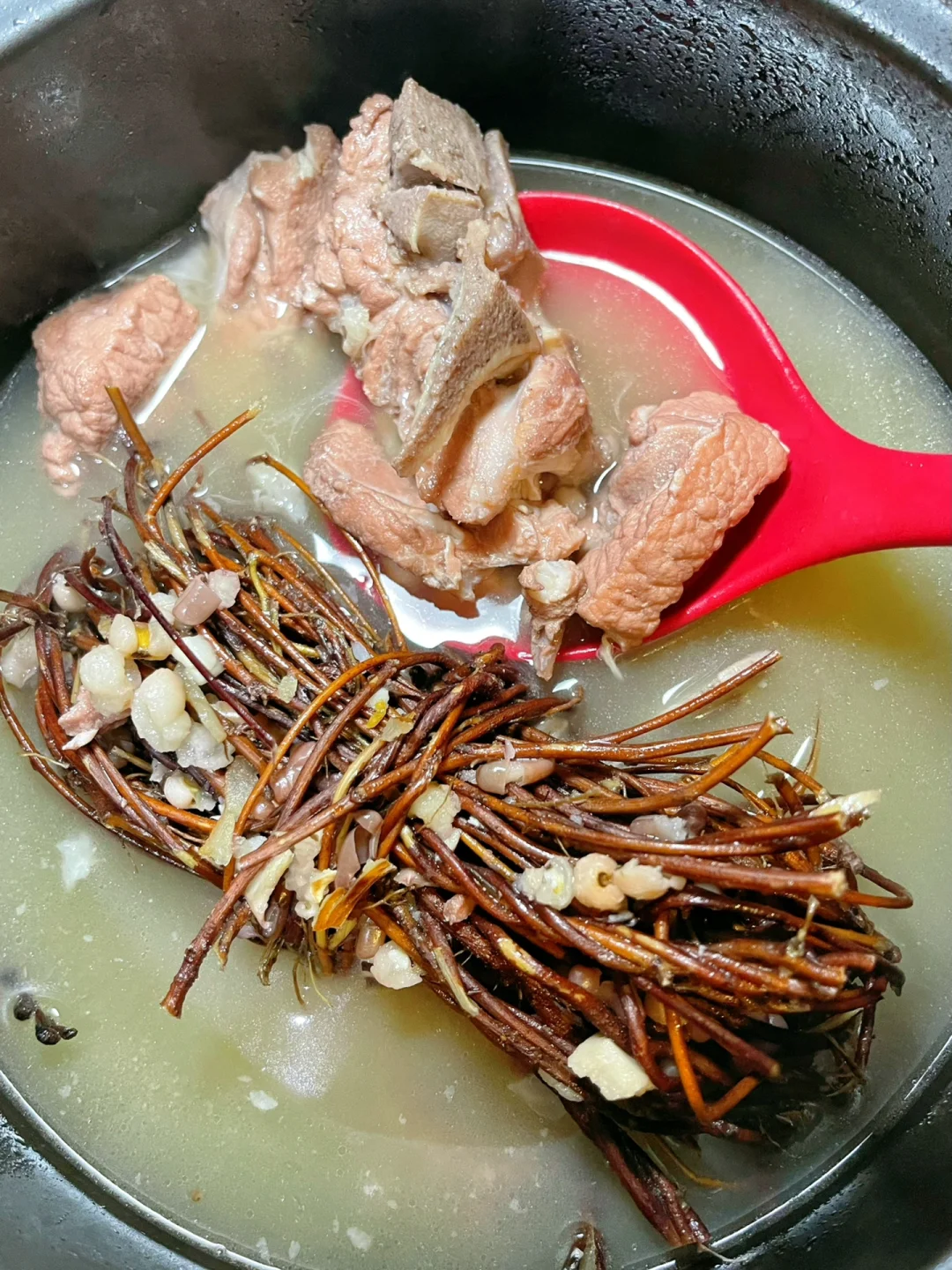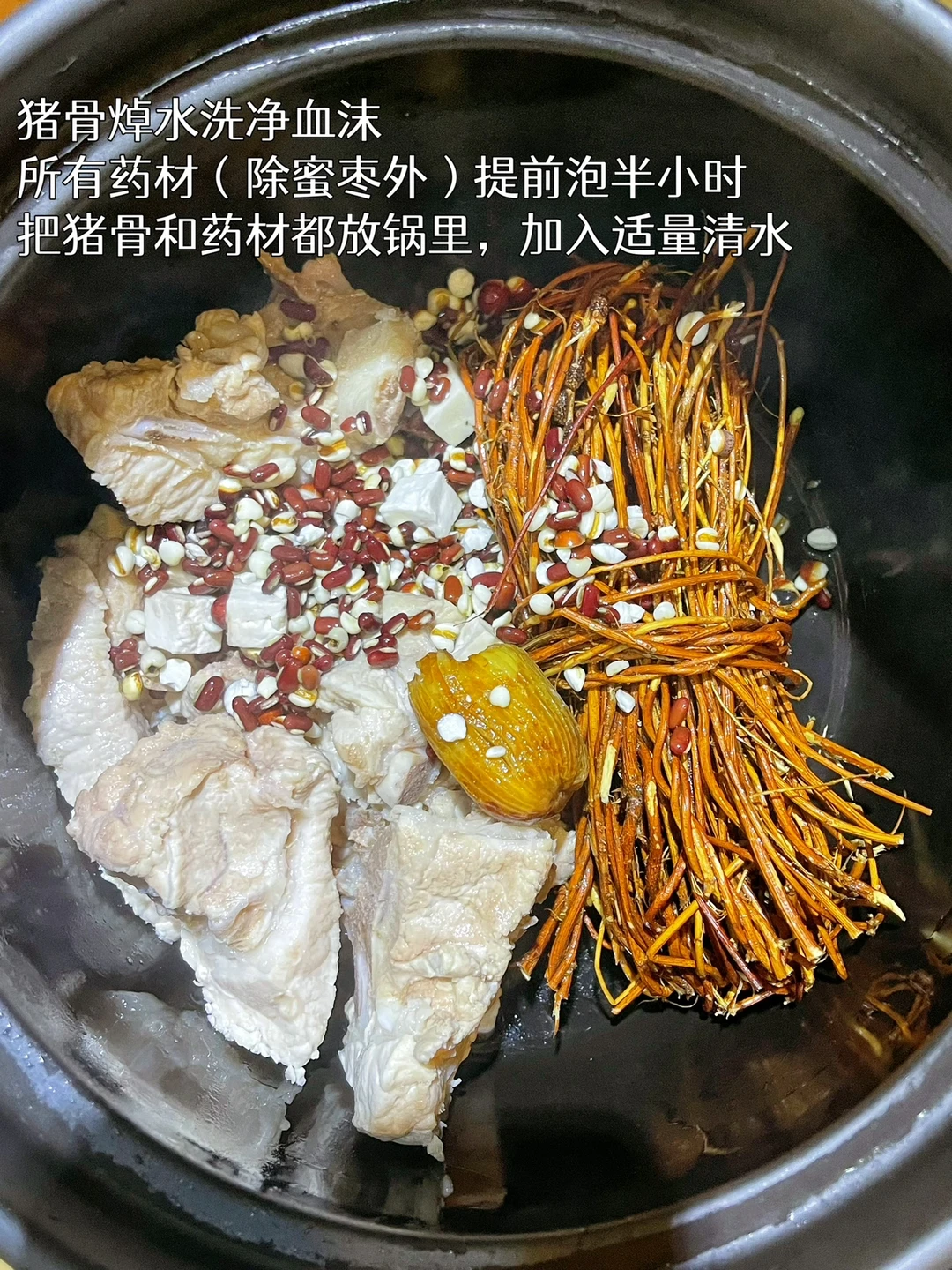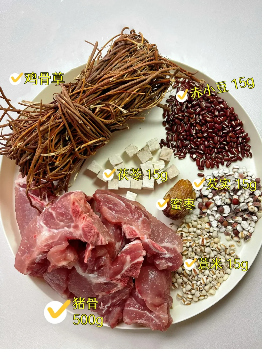 阴雨绵绵一个多星期了😡,你是不是也全身乏力,做啥事都没精神,肚子咕咕叫还经常放屁?赶快安排这个鸡骨草茯苓猪骨汤! 📝【食材】:鸡骨草 1扎、猪骨、猪骨 500g、蜜枣 1个、芡实、赤小豆、薏米、茯苓各15g 👉【做法】: 药材泡半小时,猪骨焯水洗净,一起放锅中大火烧开,转小火煲1.5小时即可✅ 🌟以上药材按1:1比例,约4-5碗汤 🌟猪骨可换成猪横脷 在这个令人讨厌的回南天,给家人来一碗祛湿汤,清肝利湿,清热解du,健脾qu湿,一身轻松!