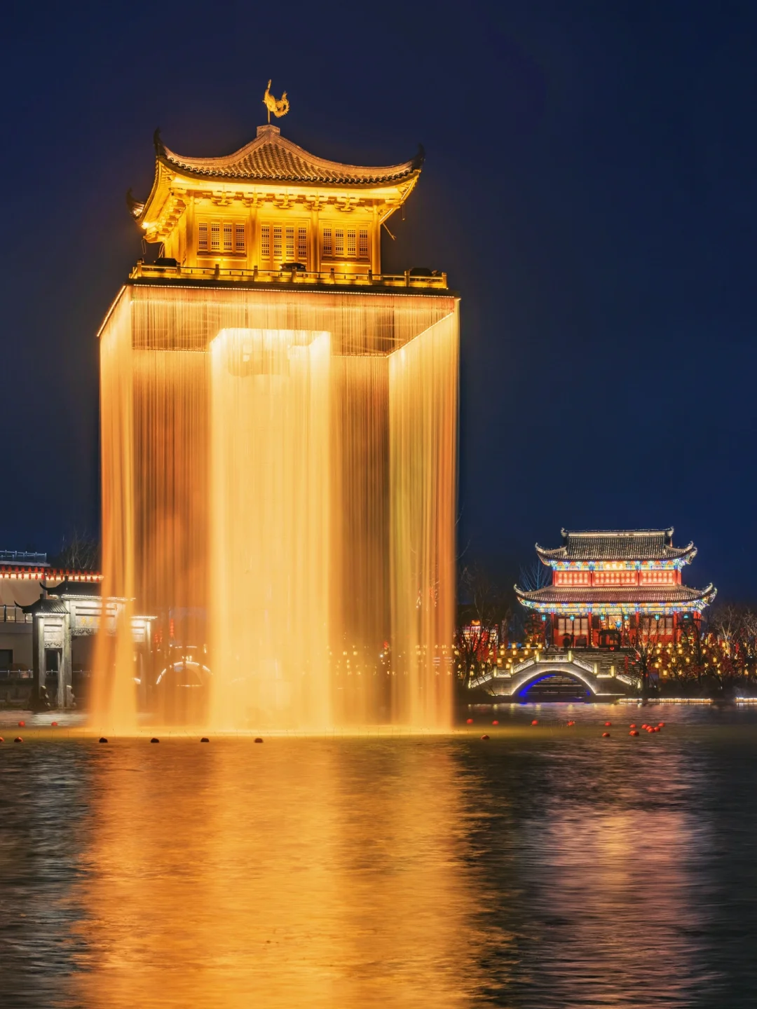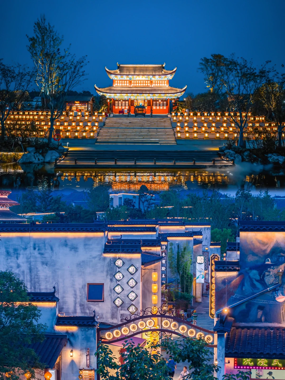 “夜看星河问楼台,身着华装入徽州。”🔮夜幕降临,整个婺女洲流光溢彩,乘着游船🛶摇摇晃晃的穿越金光闪闪⛩的水幕金阁;感受国家非遗表演【板凳龙】🐲和【徽州鱼灯】热闹壮观的场面,仿佛徽州盛世照进现实。