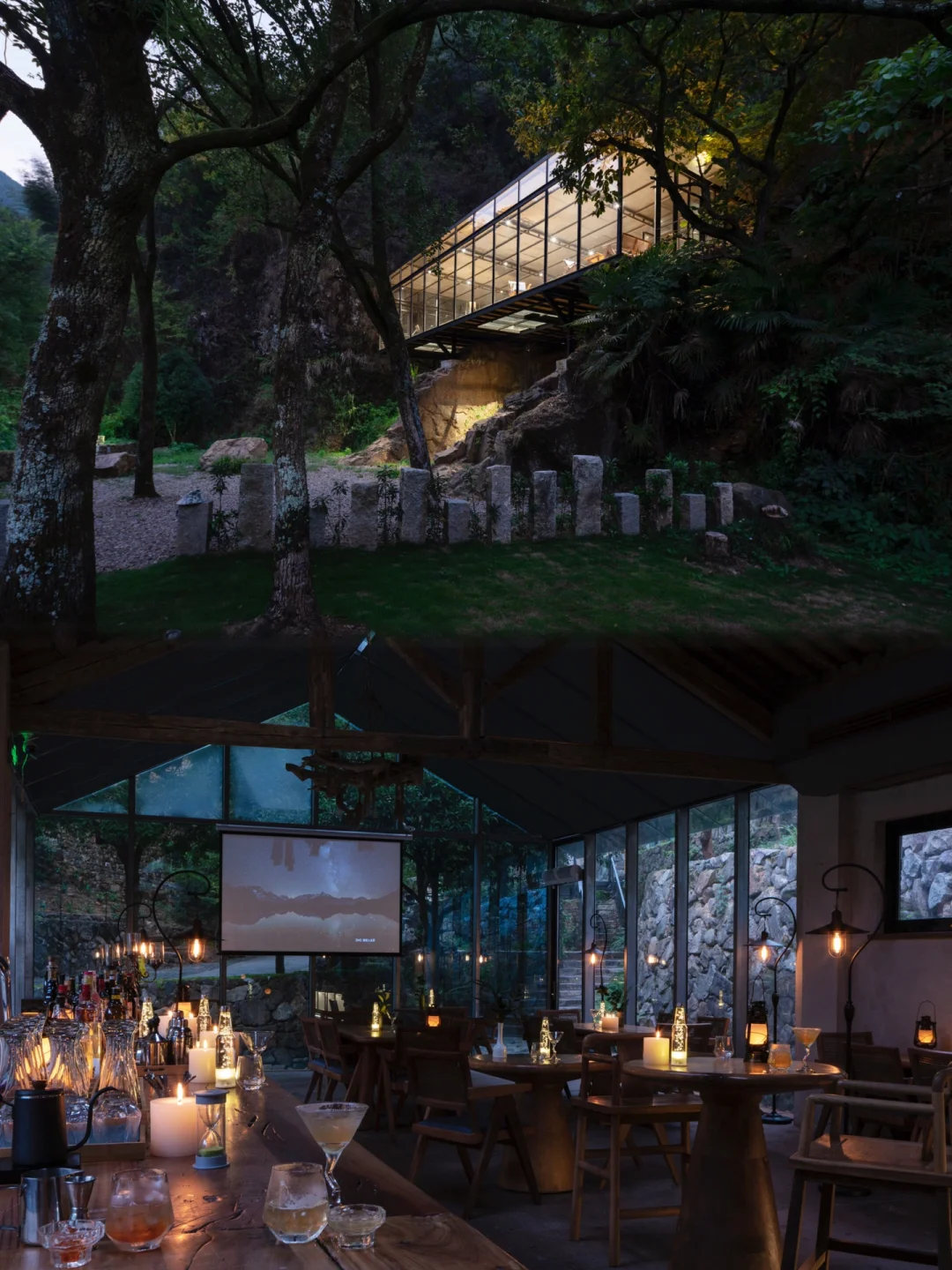 40余栋建筑缘溪而上,早上在悬崖健身房🏋️体验一场“腾空修仙”般的晨练后🥣享受酒店精美的早餐;午后,可以静静的享受颂钵疗愈🔮,净化疲惫的心灵;亦或是在林溪环绕的生花书院📖,品一杯香茗,在书海中独处一整天;此外中/西餐厅、酒吧/咖啡吧、山野泳池、矿坑温泉,围炉煮茶都是不错的体验,如果团建宴请,活动室、会议室、宴会厅也都可以组织活动;动静皆宜,与山水融为一体。