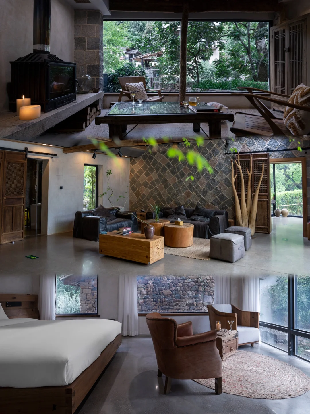 酒店的客房基本以独栋别墅为主,大到房梁🪵、小到器物🪹,每一件均是常年驻于此的老师傅们手工制作,犹如枯木生出枝芽,更有自然的生命力🪻。