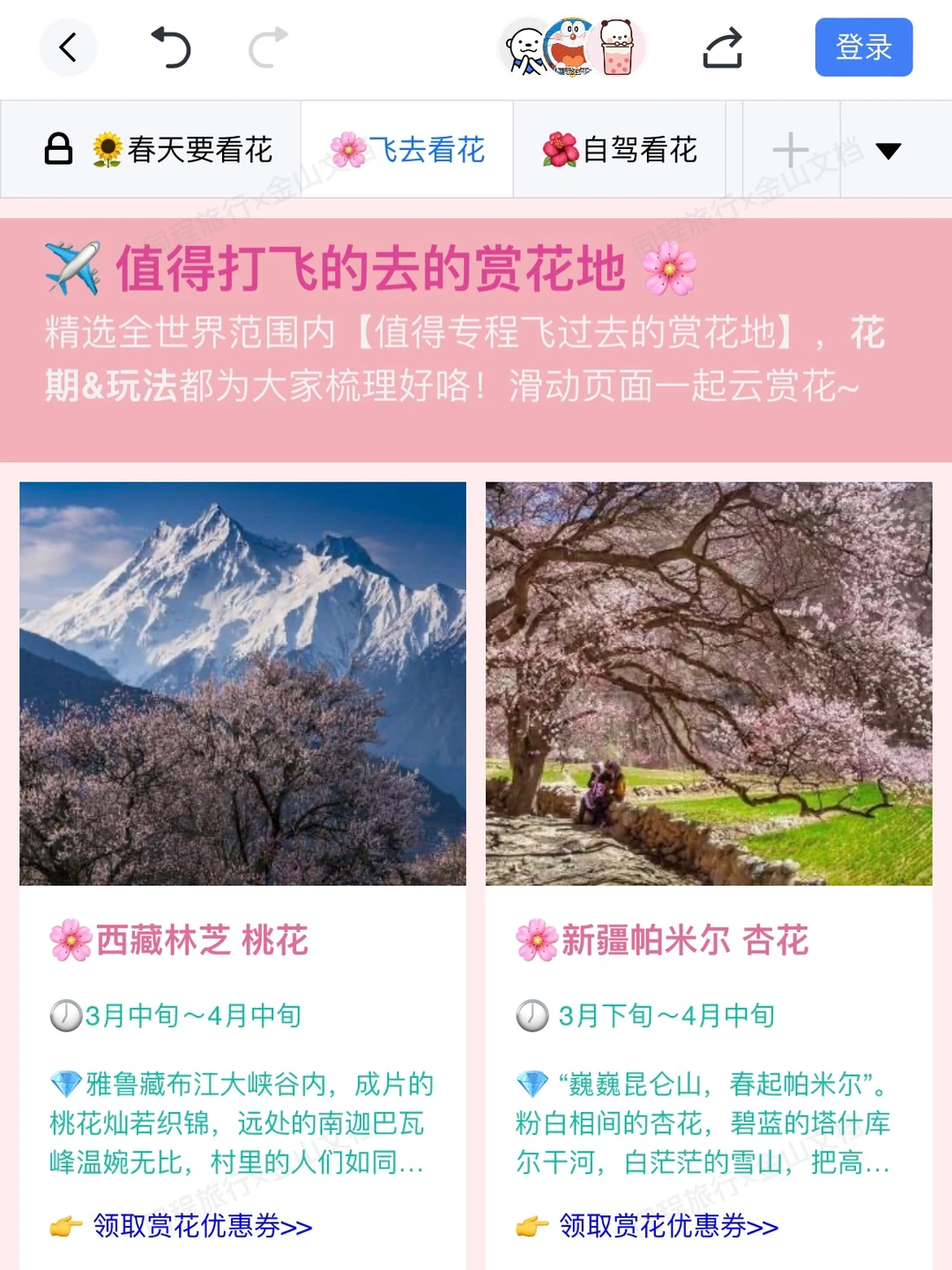 金山文档 同程旅行 春天不看花你还想干啥 春季赏花好去处 春季赏花 指南