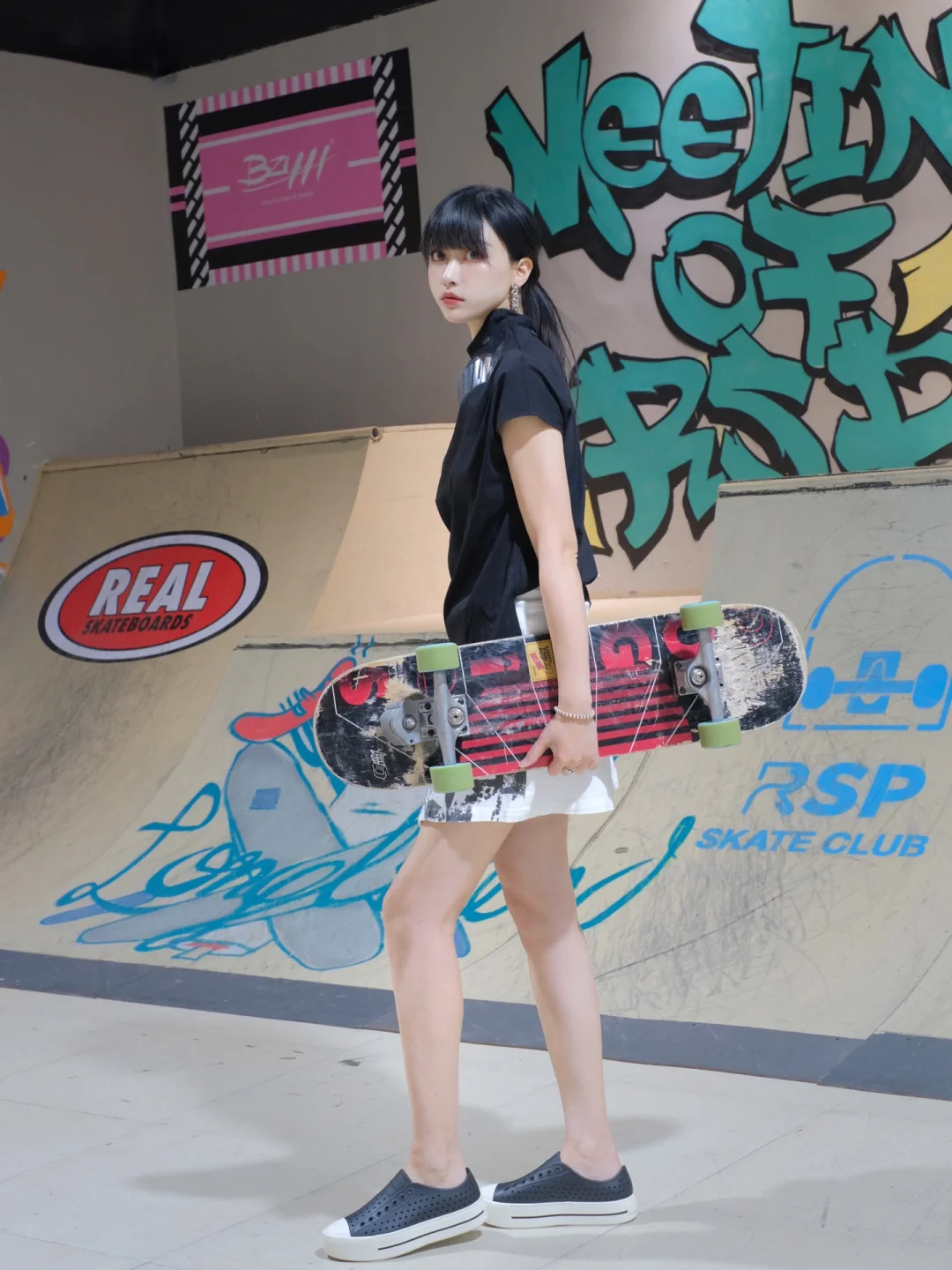 穿着新鞋去滑板🛹这双洞洞鞋太舒服啦