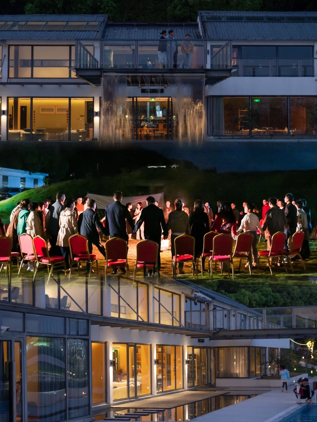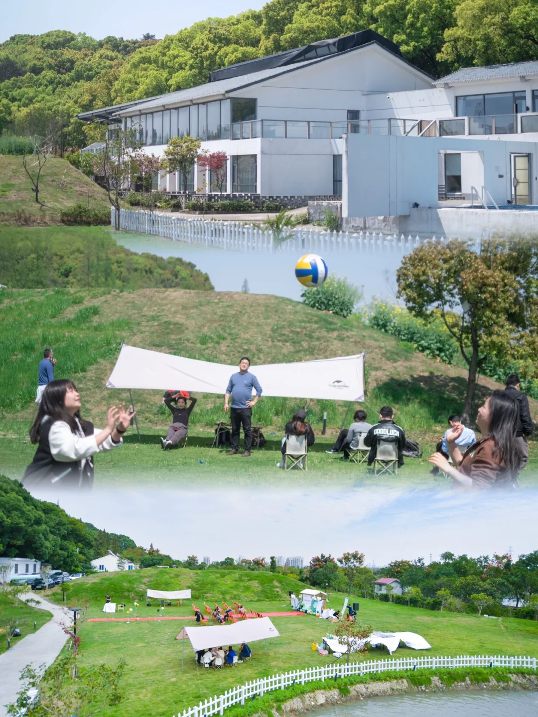 发现一家超适合团建的宝藏民宿🏨,背靠灵山⛰️,面临慈江,紧邻保国寺🗿。吃住玩一体,场地足够大,20~50人来团建都没有问题‼️