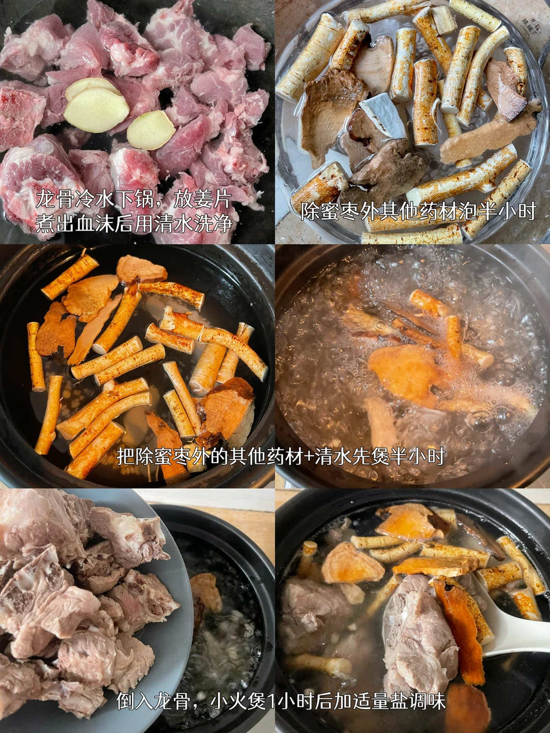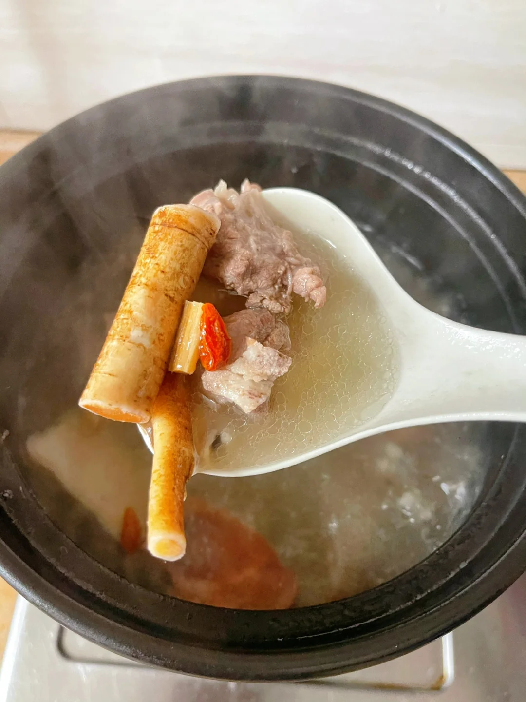 热气腾腾的三餐 🤧现在天气又湿又闷,总感觉浑身无力,贪睡,小腿酸软,头部沉重,昏昏沉沉,广东师奶又要煲靓汤啦! 🪁趁着周末,特意煲了【五指毛桃土茯苓祛湿汤】,健脾祛湿,浑身轻松! 📝【材料】:参考图片,这个分量适合3-4人喝 👩🍳【做法】:骨头焯水洗净备用,除蜜枣外其他药材泡半小时,先把药材煲半小时,再放入骨头和蜜枣,小火煲1小时即可!(或全部材料+骨头大火转小火煲1.5小时即可) 春夏交替是湿气最重的时候,这个汤真是当季必喝,五指毛桃具有淡淡的椰香味,一家大小都能喝,还你一身清爽✅
