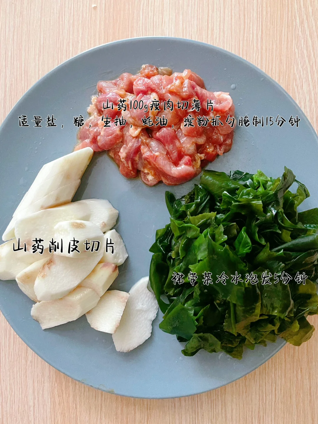 👉食材准备:猪肉120克,山药100克,裙带菜一小把