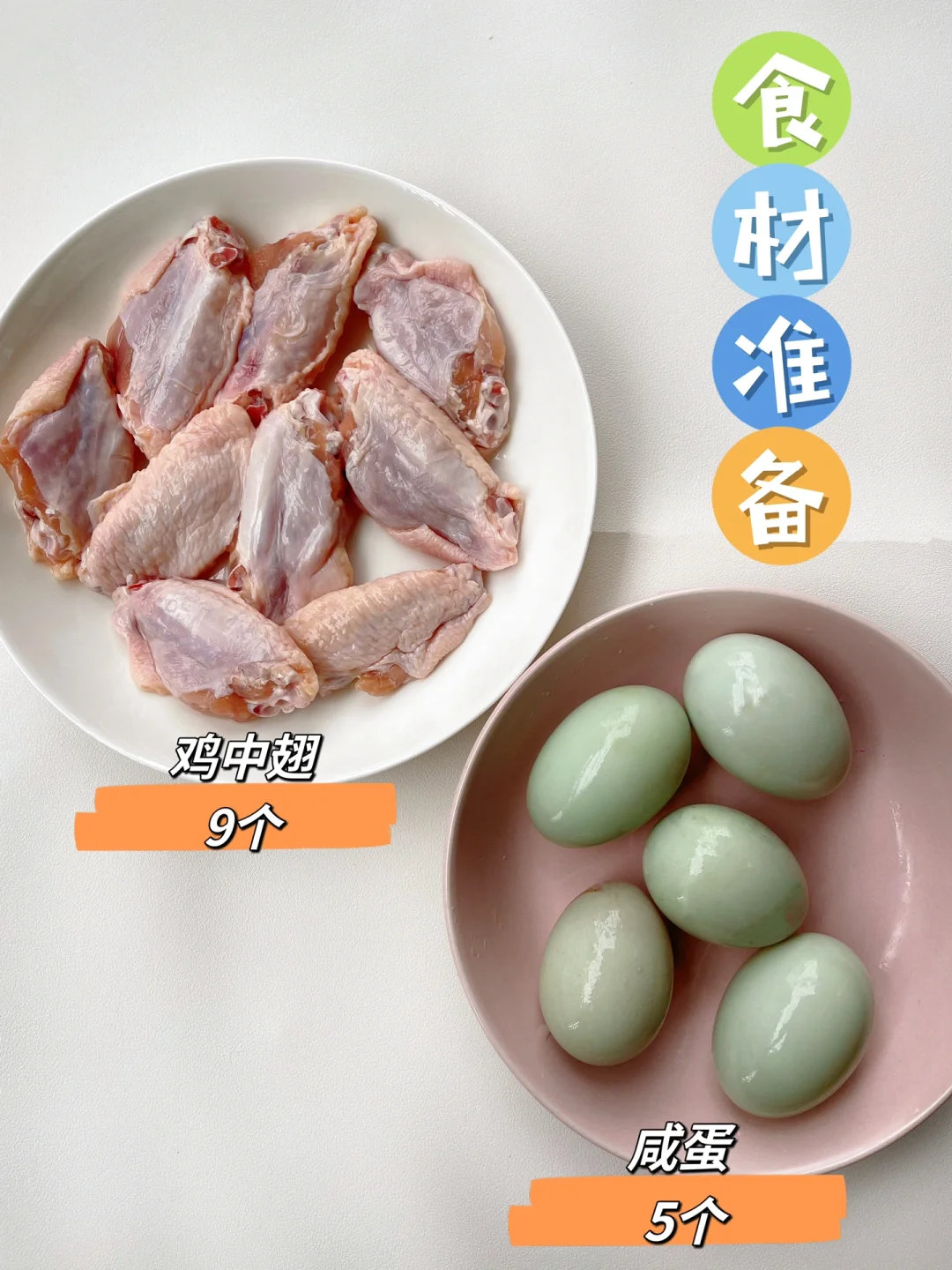 📝【食材】:鸡中翅 9个、咸蛋5个(只要蛋黄)