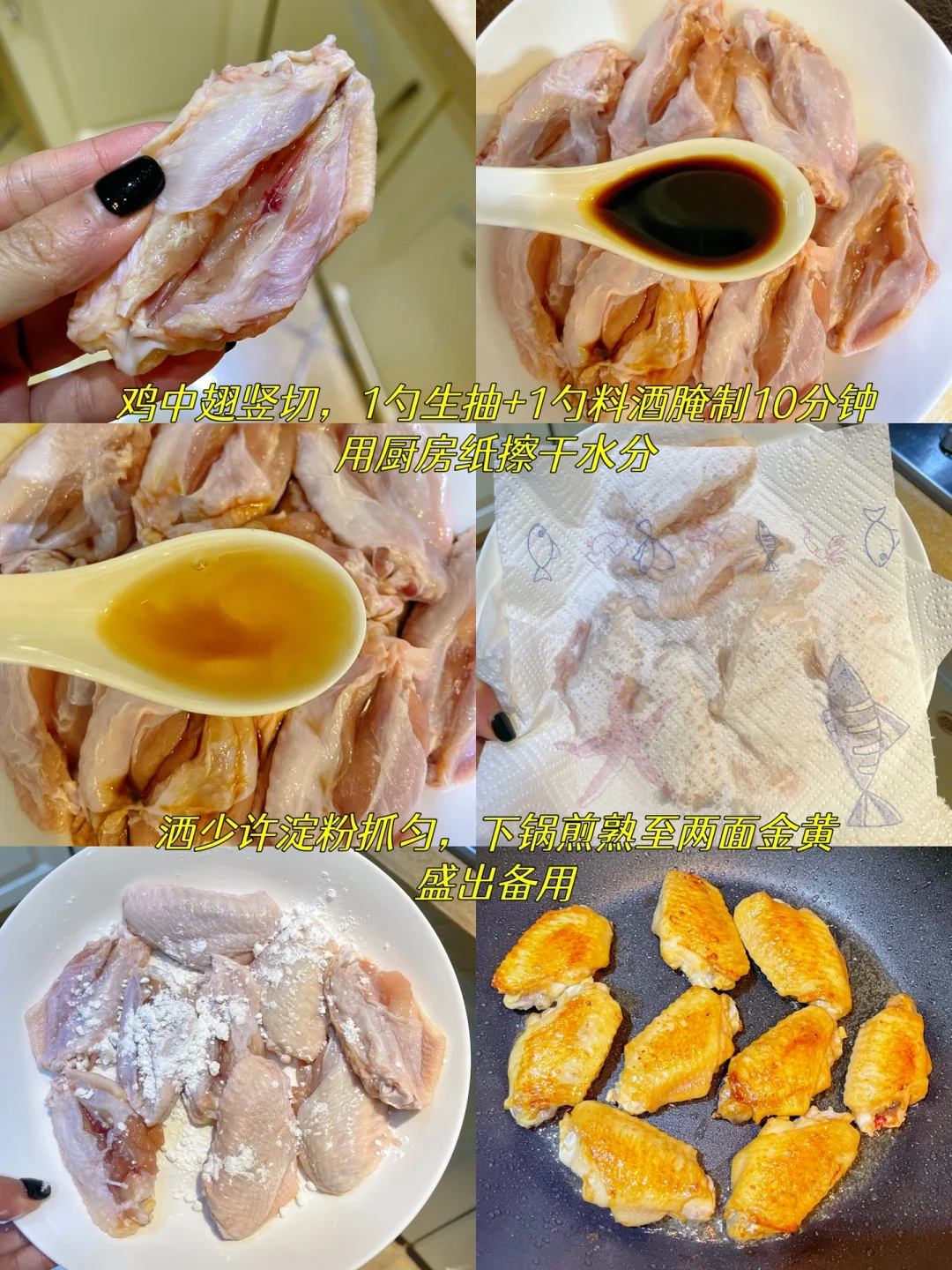 🌟因为这个菜不用加水,鸡翅一定要煎熟,可以用筷子戳下没血水就是熟了