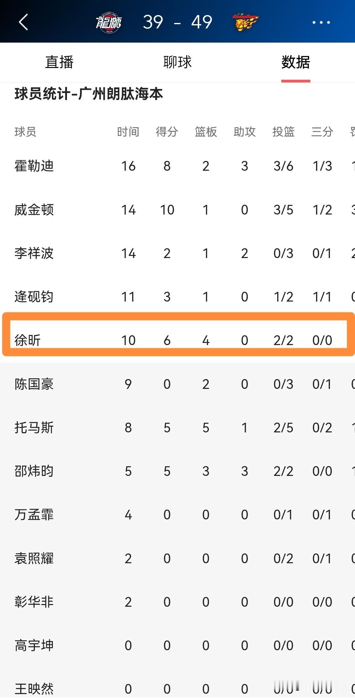 广州朗肽海本新星徐昕真是太不懂事了!在今天进行的广州朗肽海本和广东东阳光的上半场比赛中,徐昕面对培养自己多年的老东家打得特别起劲,他在首发出战的10分钟里,投篮2中2,其中罚球3中2得到6分4篮板1盖帽。 从徐昕在前两节比赛中的表现来看,他特别希望能够在老东家面前证明自己,尤其特别想在前主帅杜峰面前证明自己。