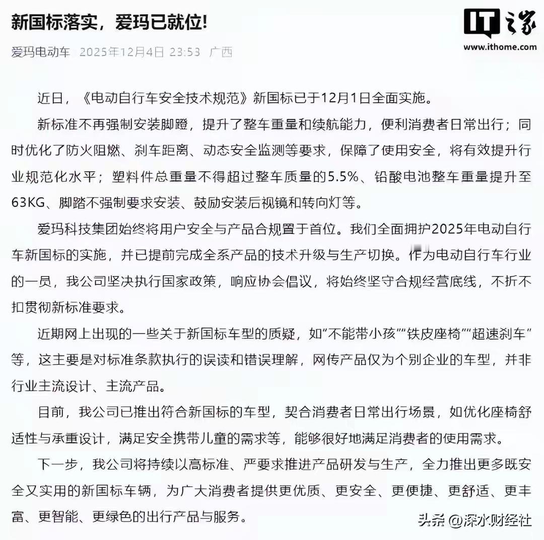 雅迪爱玛致歉太可笑,标准制定者不理解标准? 近日,雅迪和爱玛这两大电动车巨头的“致歉事件”引发了广泛热议。表面上看,是企业的责任感和对消费者的重视,但细细品味,却让人忍不住发出一声叹息:这背后到底隐藏着怎样的真相?为什么在制定行业标准的关键时刻,作为“标准制定者”的他们,却似乎完全不理解自己所制定的“标准”意味着什么?这场“道歉风波”,究竟折射出什么样的行业生态和企业心态? 或许有人会说:“他们这是在挽回形象,毕竟消费者的信任比什么都重要。”但真的是这样吗?我更愿意相信,这背后隐藏的是一种令人心碎的“标准盲区”——那些制定标准的人,是否真正理解了标准的本质?标准,不仅仅是纸上的条文,更是对行业未来、对消费者权益的承诺。而当标准变成了“空话”,企业的“致歉”又能挽回多少信任? 我们不妨换个角度来看:这场“致歉事件”其实是一次行业的镜子。它映照出的是一些企业在追逐短期利益时的盲目自信,以及对行业规范的漠视。标准的制定,本应是智慧与责任的结晶,但在某些企业眼中,却变成了“我说了算”的工具。这不禁让人反思:我们到底在追求什么?是在打造一个有温度、有责任感的行业,还是只为了短暂的市场份额? 更令人担忧的是,消费者的信任正逐渐被稀释。我们每天面对的,是各种“标准”与“承诺”的真假难辨。谁在真正守住了底线?谁又在利用“标准”做文章?当“标准制定者”都不理解自己制定的规则时,行业的未来又在哪里? 这场风波,或许只是一个开始。它提醒我们:标准不是形式主义的口号,而是行业的灵魂。只有真正理解、践行标准,企业才能赢得长远的尊重与信任。否则,所谓的“致歉”只会变成一场笑话。 读到这里,你是不是也在心里暗暗叹息?行业的未来,究竟还需要多少“致歉”才能唤醒那些真正懂得责任的人?让我们共同期待,有一天,标准不再是空话,而是真正成为行业的底线和未来的保障。坑爹雅迪电动车