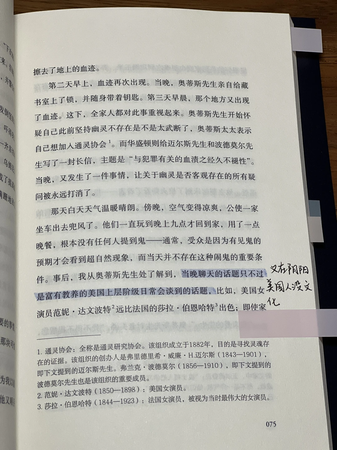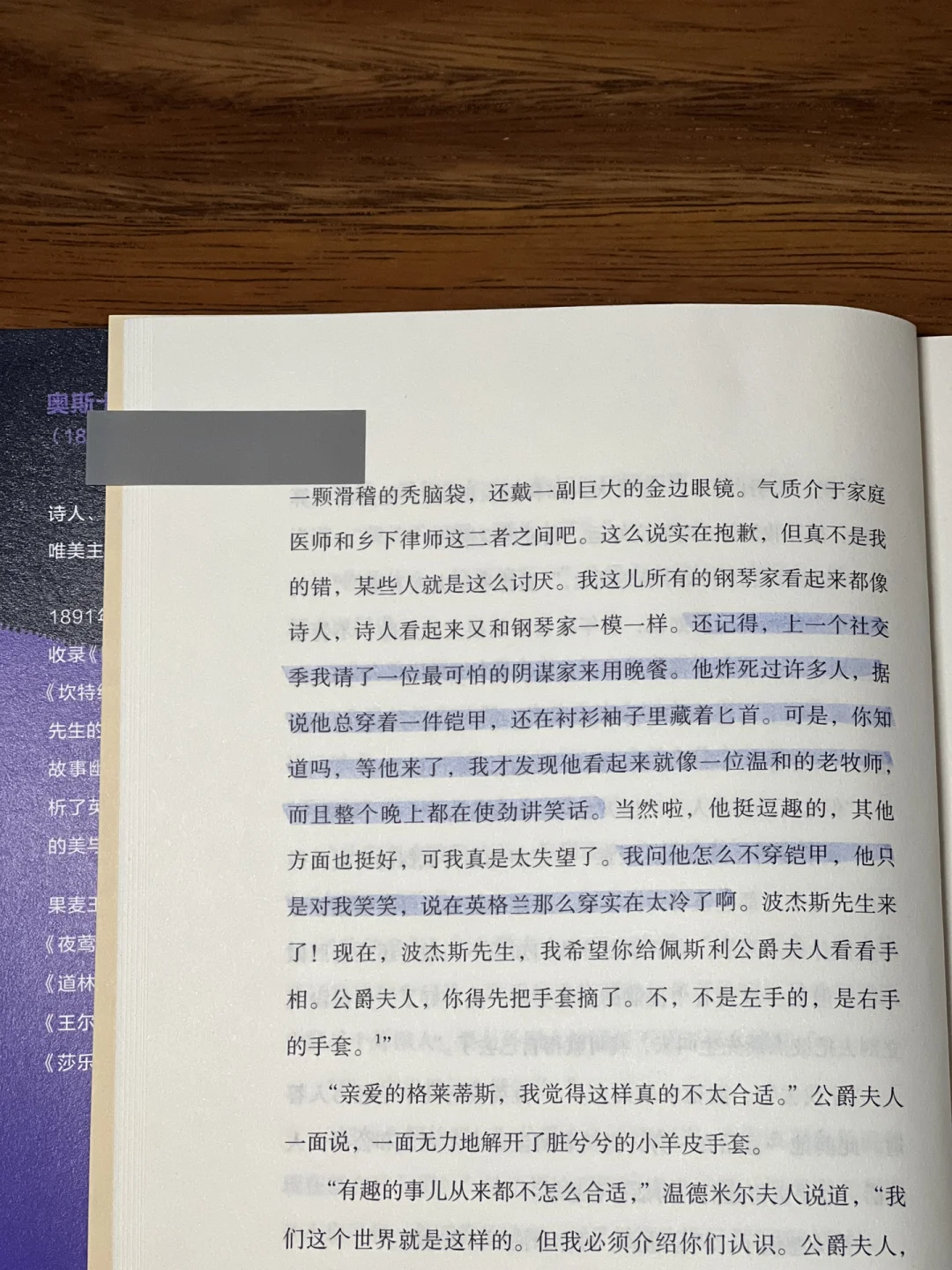 这本《王尔德奇异故事集》收录了5个中短篇故事。这些故事里,给我留下深刻印象的是这样几个人物:被手相师预言可怕命运的年轻人、和英国鬼魂斗智斗勇的美国一家人、为了文学理论献出生命的年轻人。