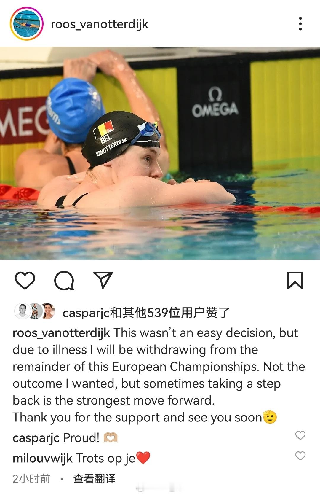 欧洲短池游泳锦标赛 荷兰🇳🇱名将Caspar Corbeau和比利时🇧🇪名将Roos Vanotterdijk都因为生病决定退出后续剩余比赛