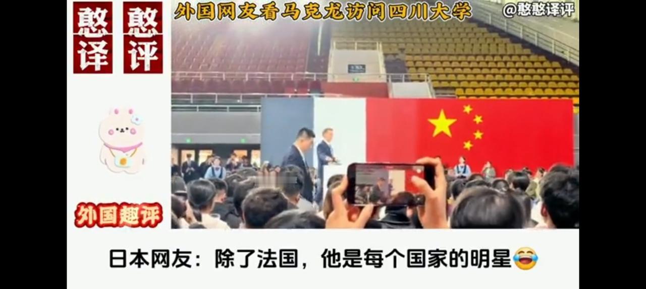 39岁他就是法国总统, 四川大学演讲前他首先道歉,没扎领带是因为表示随和,瞧他局促的表情孩子们看到了自己的未来。 欧洲的傲慢已经不在,至少法国不是,世界许多问题没有解决,但不能把责任都推给中国。 如此知书达礼,发言真是精彩。 相信他的演讲已经传遍世界,四川大学的孩子们将他围的水泄不通,这种场面和白宫的冷板凳令巴黎沉思,为什么同样一个国家,法国的地位天上地下? 韩国网友说,儒家文化的感染力让他怀念汉语。 日本网友说,他们的首相胡说八道已经得罪了中国。 巴西网友说,卢拉也有这样的待遇,我们和中国关系很好。 法国网友说,回国他就会从梦里醒来。
