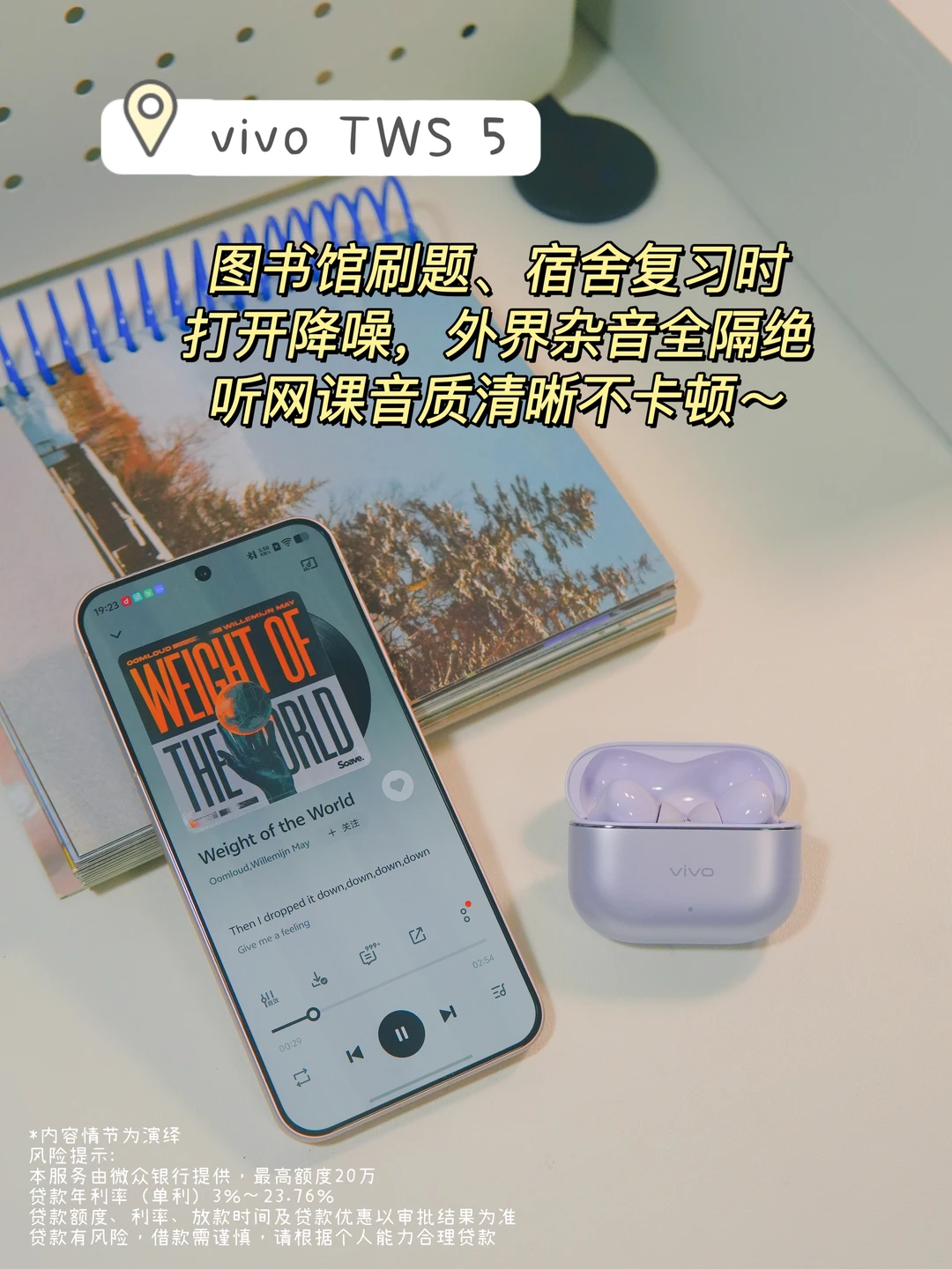 🎧vivo TWS 5:60dB深度降噪绝了,图书馆嘈杂环境也能秒变安静角落,听网课音质清晰无杂音,专注力直接拉满,日常听歌追剧也超沉浸~