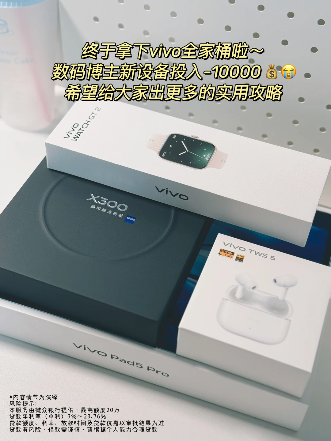[暗中观察R]一次性入了vivo全家桶,还是有点超预算,还好微粒贷 10 秒内就能出额度,没耽误攒素材。相信这笔投资日后会正面反馈回来的!