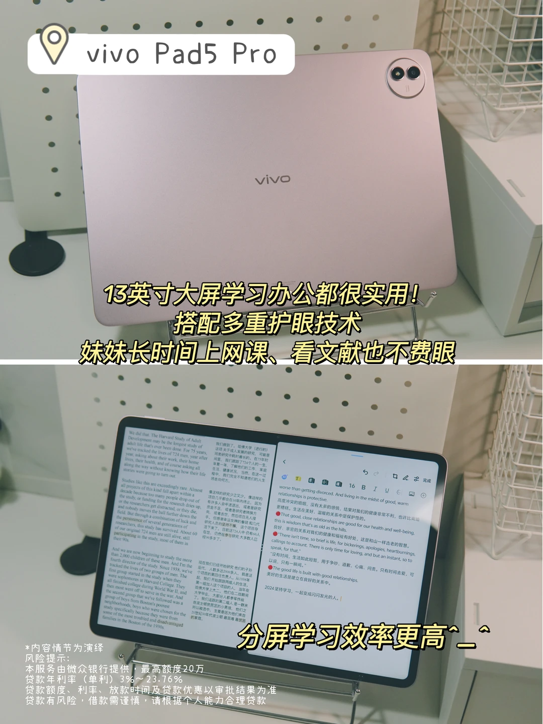 📓vivo Pad5:12.1英寸大屏看网课、刷文献视野超开阔,护眼模式久坐学习也不费眼。分屏操作太实用,边听课边记笔记、边查资料边写论文效率翻倍。