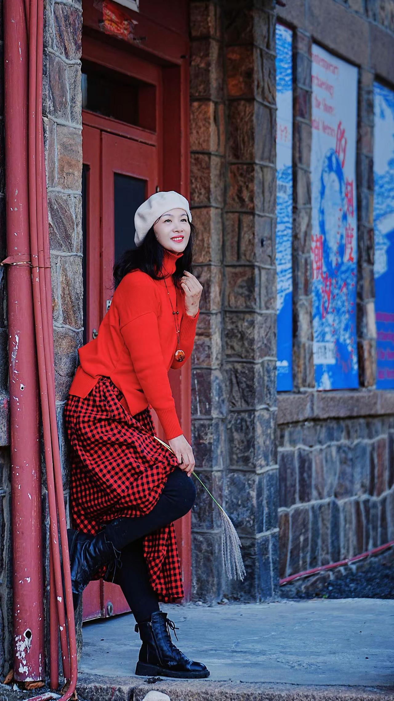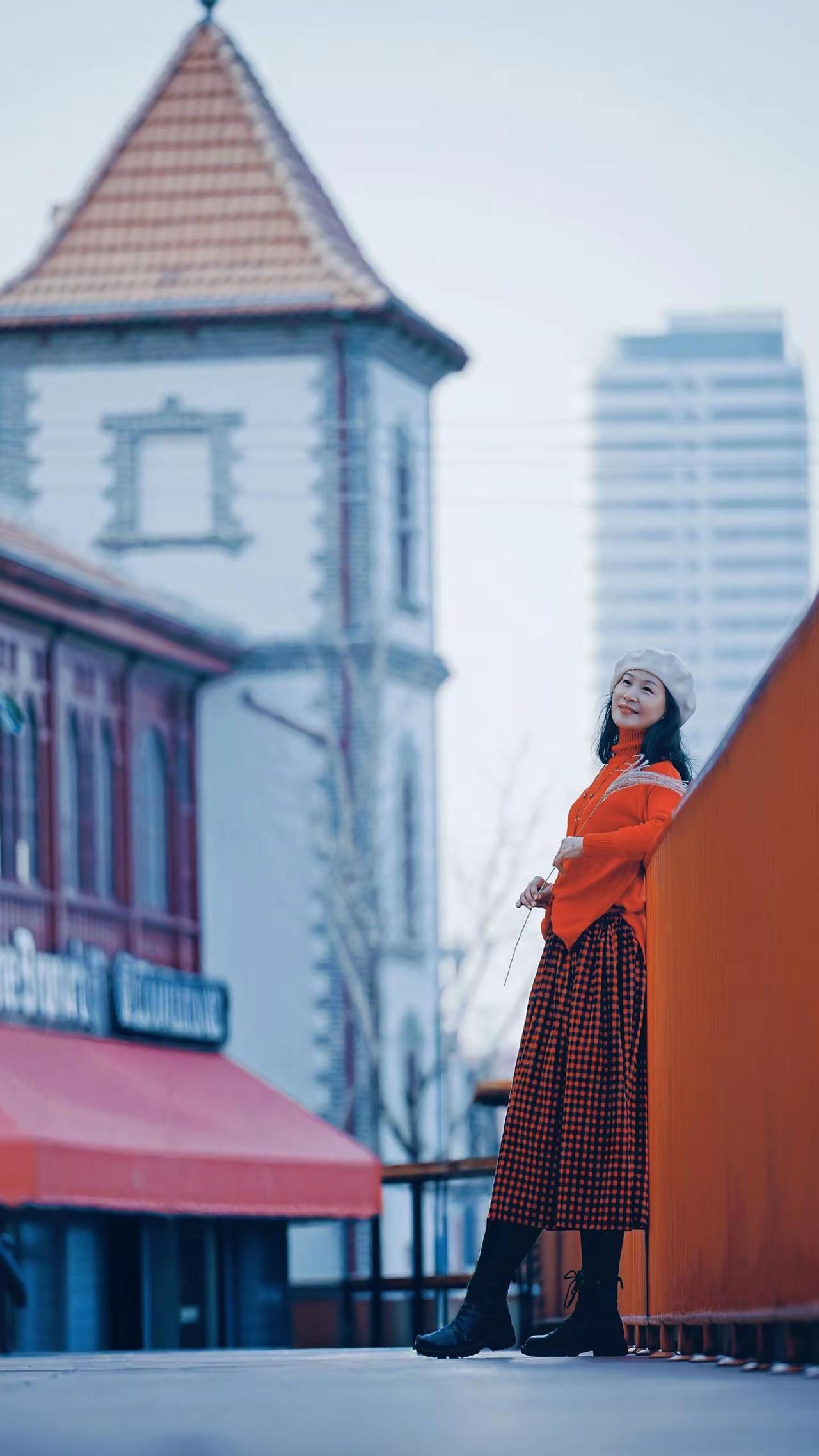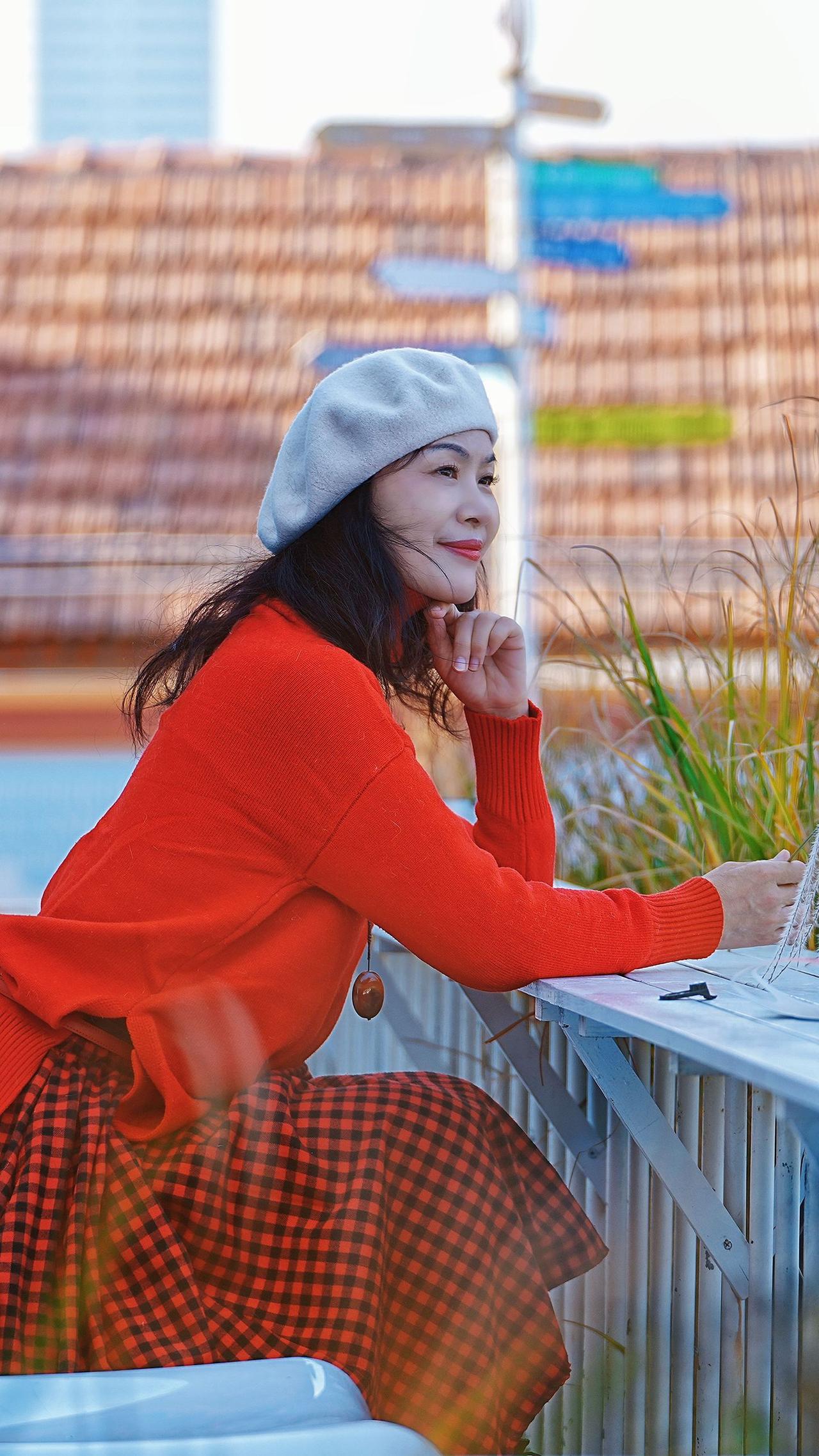 🎉在老城邂逅冬日浪漫!🧣焦糖色大衣与红瓦白墙太配啦~🍂阳光穿过树枝洒下温柔
