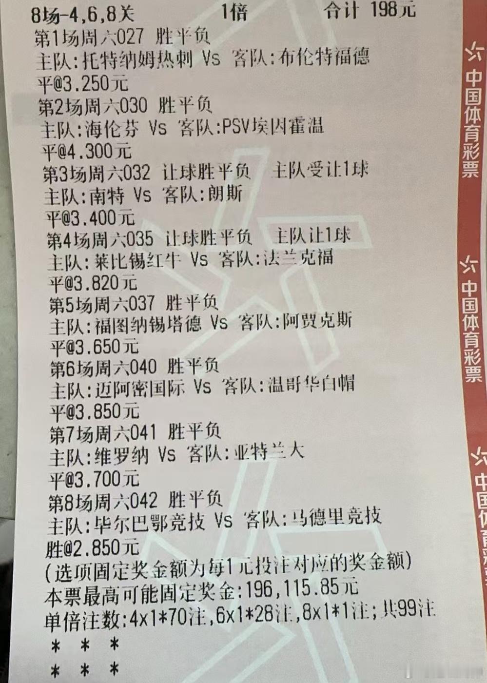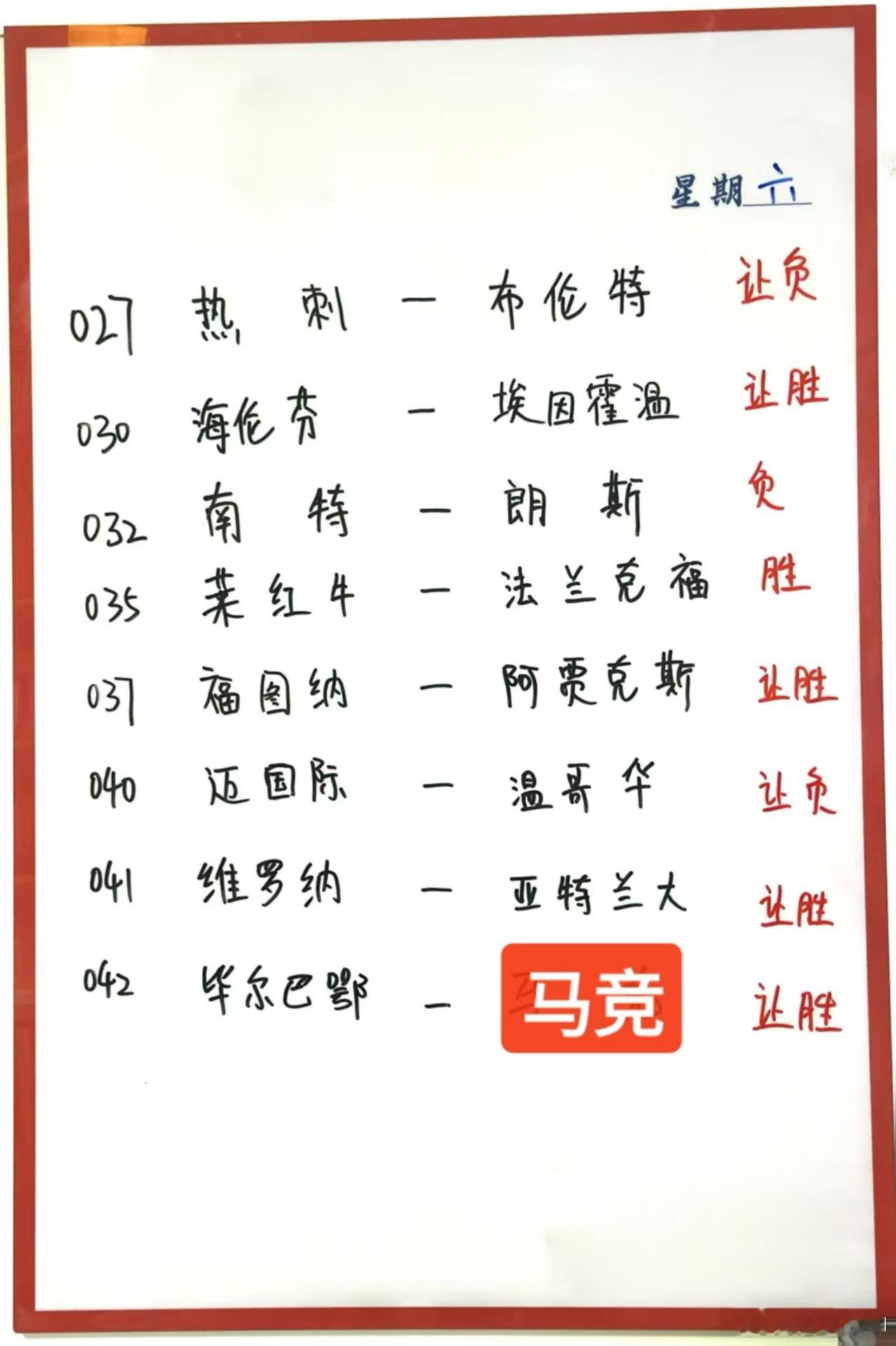 12月6日015 比利亚雷亚尔vs 赫塔菲016 特鲁瓦 vs 罗德兹017 萨索洛 vs 佛罗伦萨018 沃尔夫斯堡vs 柏林联合019 海登海姆vs 弗赖堡020 斯图加特vs 拜仁 021 奥格斯堡vs 勒沃库森022 科隆 vs 圣保利023 纽卡斯尔联 vs 伯恩利024 伯恩茅斯 VS 切尔西025 埃弗顿 VS 诺丁汉森林026 曼城VS 桑德兰027 热刺VS 布伦特福德028 伊普斯维奇VS 考文垂029 阿拉维斯Vs 皇家社会030 海伦芬vs 埃因霍温031 圣克拉拉 vs 卡萨皮亚032 南特 vs 朗斯033 国际米兰 vs 科莫1907034 利兹联 vs 利物浦