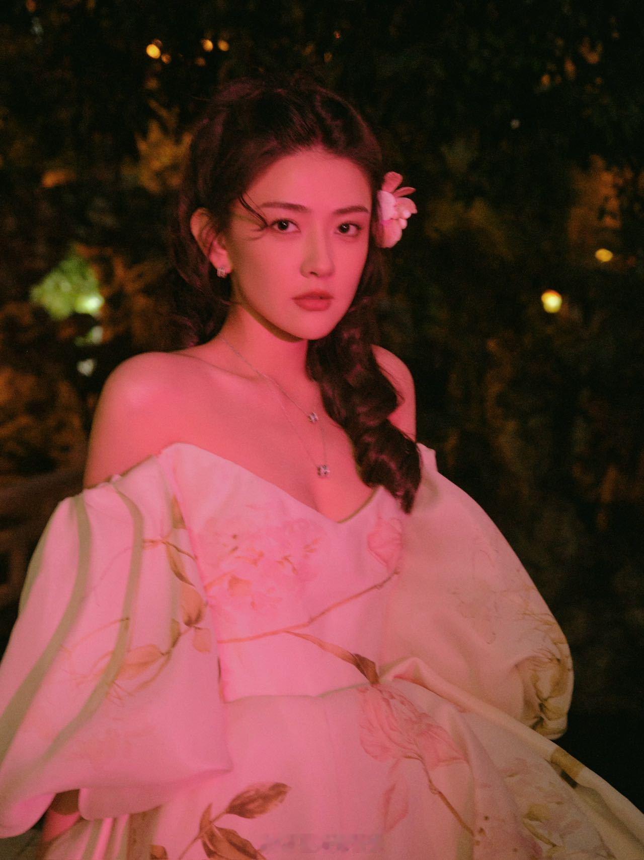 梁洁 花仙子 身着moniquelhuillier26SS现身爱奇艺尖叫之夜,宛如花仙子降临人间,好美!梁洁