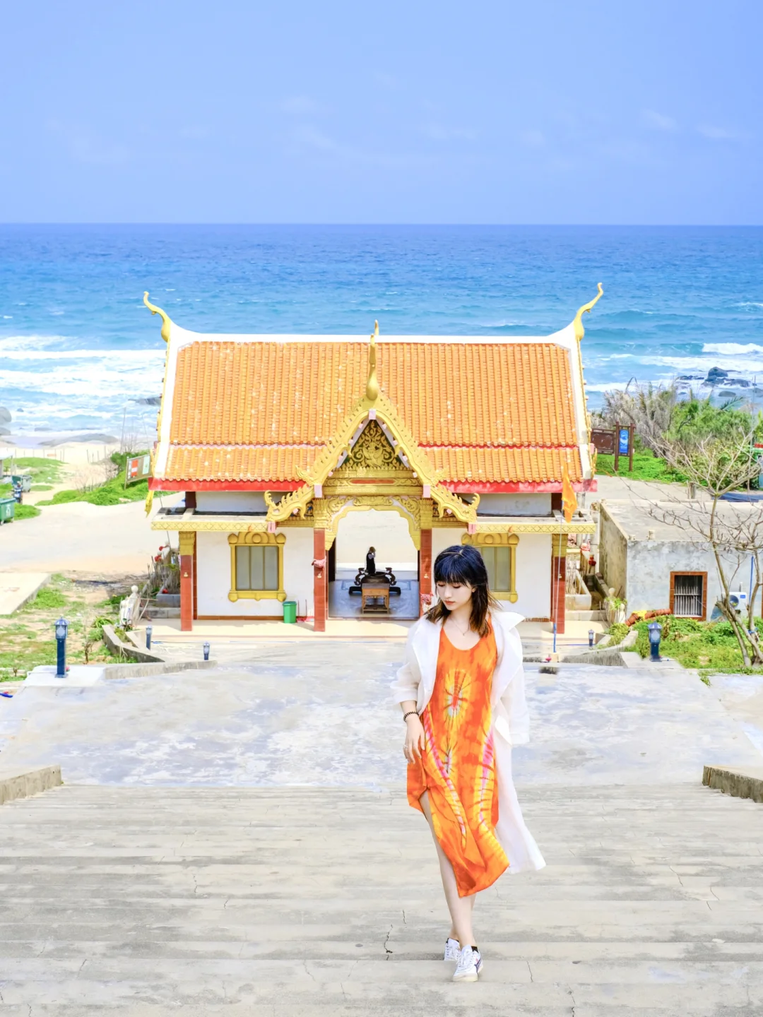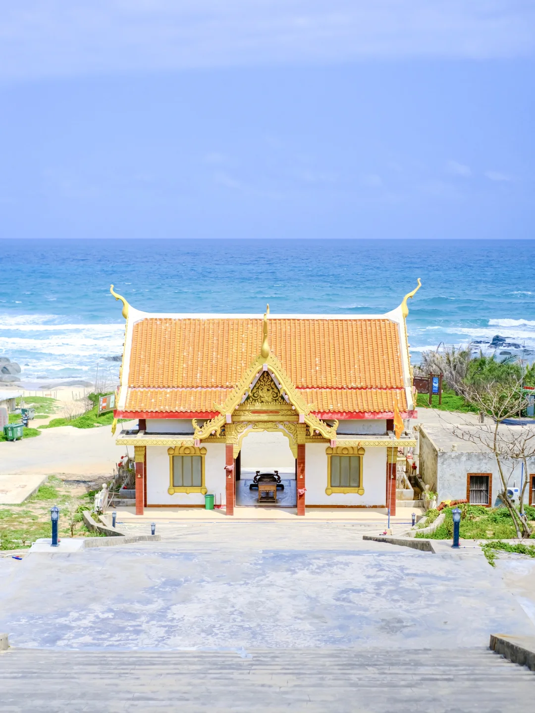 知道文昌是因为火箭🚀发射! 没想到在铜鼓岭遇见佛光下的小澳湾, 简直太惊艳了❗️ · 在文昌铜鼓岭的海边有一座庄严的泰式庙宇🛕, 由海南文昌籍泰国🇹🇭华人建造。 佛祖慈悲的注视着往来的众生, 和波涛汹涌的海滩🌊。 梵音🎵伴着海潮声, 烦恼似乎也在此刻随海水一起退去! · 📍地址:海南省文昌市钻石大道「佛光寺」