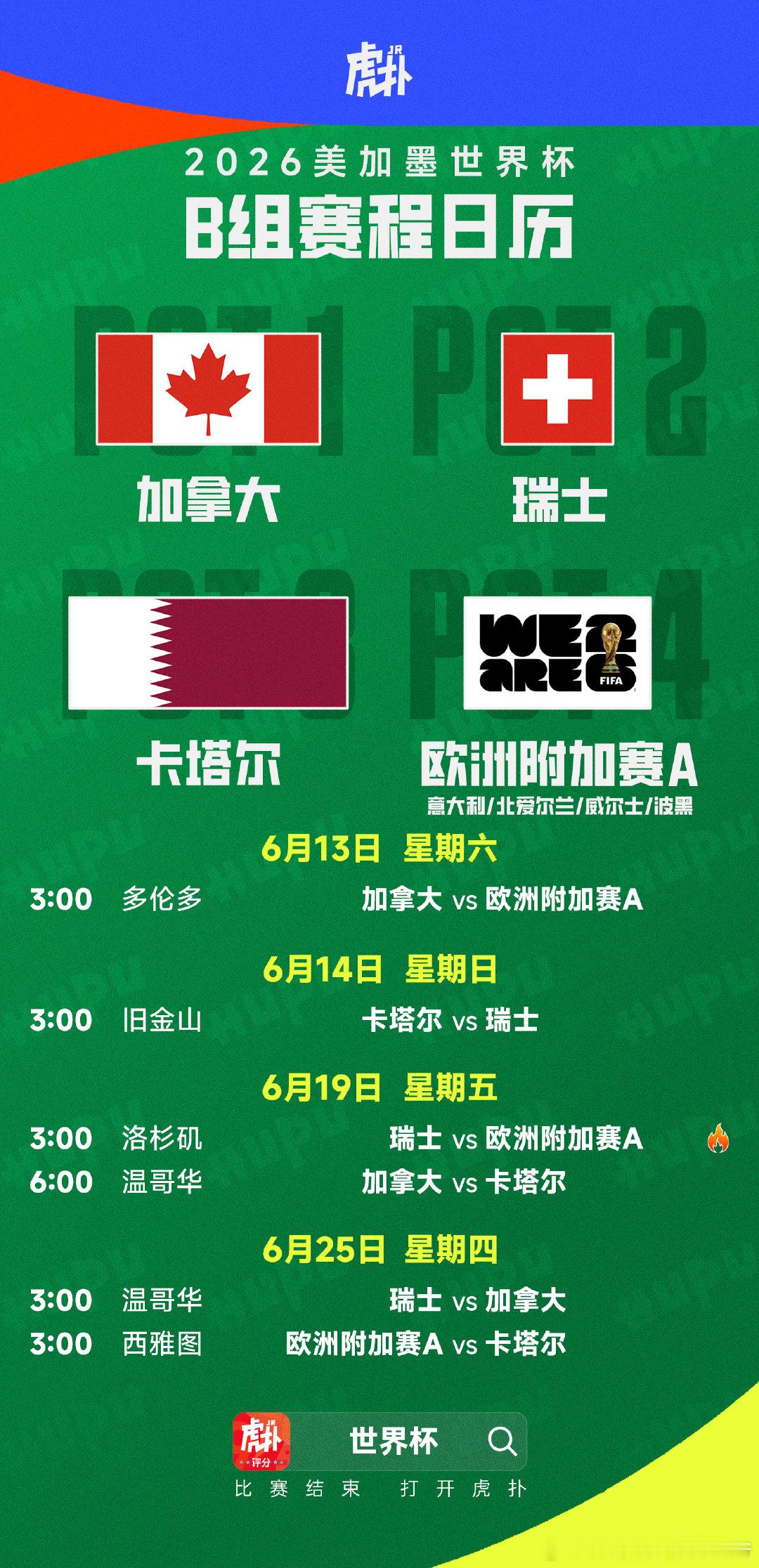 2026世界杯分组出炉世界杯赛程出炉虎扑海报 2026美加墨世界杯赛程正式公布,时间表如下:(注:所标注时间均为北京时间) cr:虎扑足球