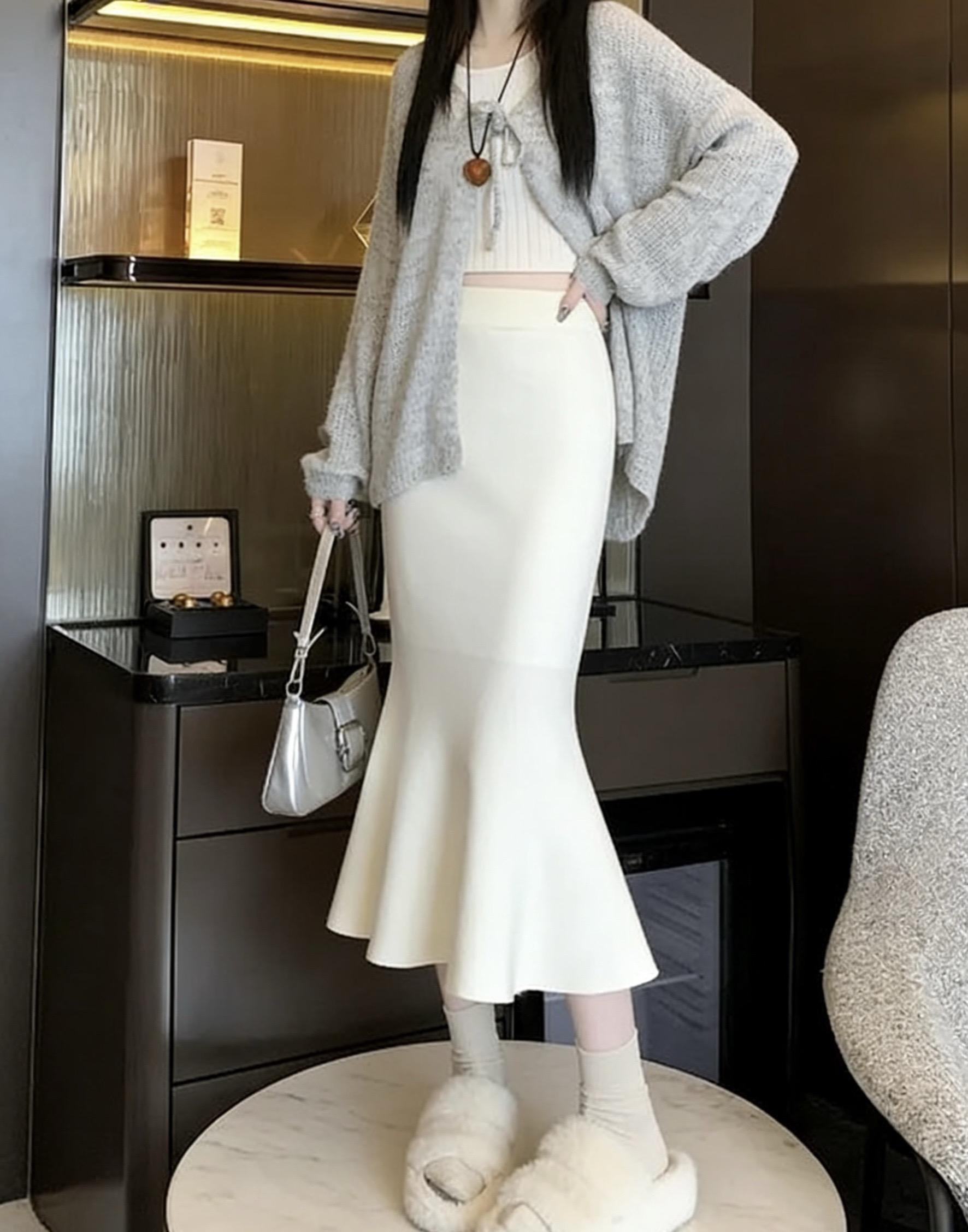 鱼尾裙 针织鱼尾裙 半身裙 鱼尾裙搭配 半身裙搭配