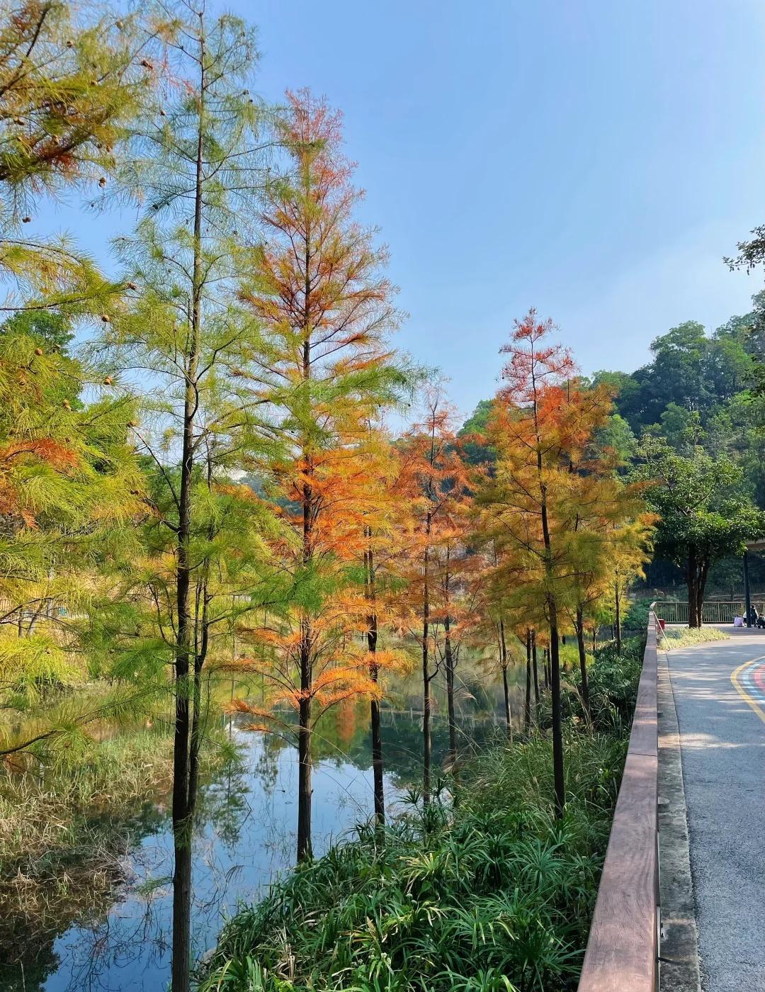 在深圳公园‼️我找到了九寨沟一样的秋色 🚗导航:雪竹径公园南门/簕杜鹃幼儿园 🚇地铁:10号线雪象站,地铁离西北门更近,入口有个大游乐场,这里进公园 ⏰提醒: ✅公园最美的风景在绿道,一定一定要走绿道❗️绿道可以从两个口进,南门这边走过水坝就是绿道入口(公园南门入口旁边,有点隐蔽)。另一个入口从西北门进来后延着山道走宿云塔小兔子🐰方向,一直往公园里面走就可以拍美美的秋色了。 ✅晴天更出片,注意防晒 ✅省碧水绿道,都是平路,穿舒适的鞋子,穿美美的裙子出片吧 周末去哪儿 浪漫生活的记录者 公园赏秋情报站 徒步赏秋好去处 秋天的自然景色 深圳户外 雪竹径 雪竹径绿道 镜头里的秋日色彩