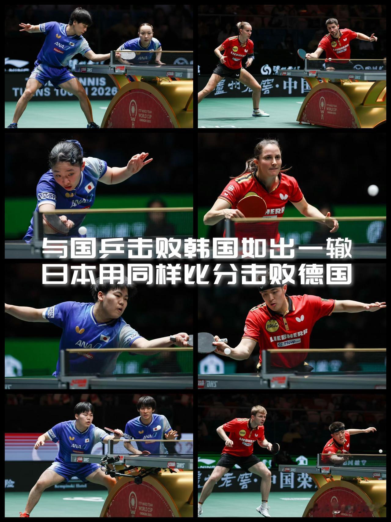 【与国乒击败韩国如出一辙,日本同样以8-3击败德国晋级决赛!】 国际乒联混合团体世界杯两场半决赛全部完赛,国乒8-3击败韩国,日本8-3击败德国。 就连每一盘比分都大差不差,混双都是3-0,女单都是2-1,总分都是8-3。 中国将与日本争夺冠军,韩国与德国争夺季军。17点,季军战在前,19点冠军战在后。