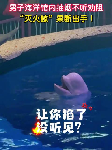 海洋馆内禁抽烟, 水上表演掌声欢。 看客务必守规矩, 白鲸不只会钻圈。 某男抽烟在场边, 吞云吐雾赛神仙。 工作人员好言劝, 我行我素故亦然。 我的领地我的馆, 一柱喷水浇烟端。 白鲸怒从心头起, 愤愤不平为大连! 大连 图片来自网络