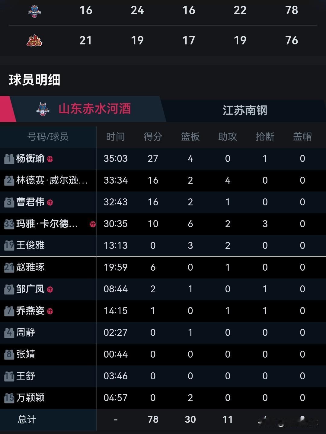 杨衡瑜27分 山东女篮胜江苏女篮