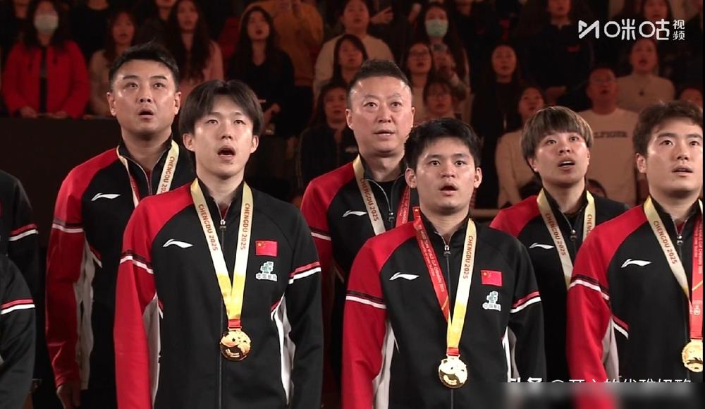 混团颁奖典礼,冠军杯闪闪发光。 王励勤为国乒队员颁吉祥物,笑着和国乒队每个人握手。 那个奖杯确实太大,一个人抱不动。王皓和肖战帮忙,和王楚钦一起才举起来。冠军自拍环节,王艺迪主动上前拍照。她心里清楚,主力队员太累了,自己多出一份力。拍照时,大家笑容都很灿烂。 这不仅仅是领奖。这是团队精神的完美展现。 看看王艺迪。她不是这次比赛的核心主力,但关键时刻站了出来。主动拿手机拍照,看似小事,却体现了团队意识。知道队友拼尽了力气,自己就多做一点。这种自觉,比金牌更珍贵。 王楚钦、王皓、肖战一起举杯的画面,也很有深意。老将新秀,教练队员,共同托起这份荣誉。奖杯的重量,靠一个人撑不住。胜利的重量,靠的是集体的肩膀。 国乒为什么能长盛不衰?技术顶尖是基础,但这种刻在骨子里的团结才是关键。没有谁是局外人。上场拼杀的是英雄,幕后支撑的也是好汉。就连拍照这样的事,都有人主动担当。 升国旗奏国歌的时刻,自豪感油然而生。这份自豪,源于冠军,更源于这个冠军团队展现出的风貌。他们赢了比赛,也赢得了人心。 团队运动,最怕的就是个人主义冒头。但在国乒身上,看到的是传承和互助。王励勤作为前辈颁奖,是一种传承。年轻队员主动分担,是一种担当。 这种精神,放在哪里都不过时。一个公司,一个家庭,甚至一个朋友圈,都需要这种“我们一起扛”的劲头。事情成了,是大家的功劳。遇到困难,一起想办法。 混团世界杯结束了。冠军奖杯会被珍藏。但比奖杯更闪光的,是团队紧紧抱在一起的样子。这份力量,会支撑他们走得更远。 这或许就是体育最大的魅力。它让我们看到的,不只是输赢。