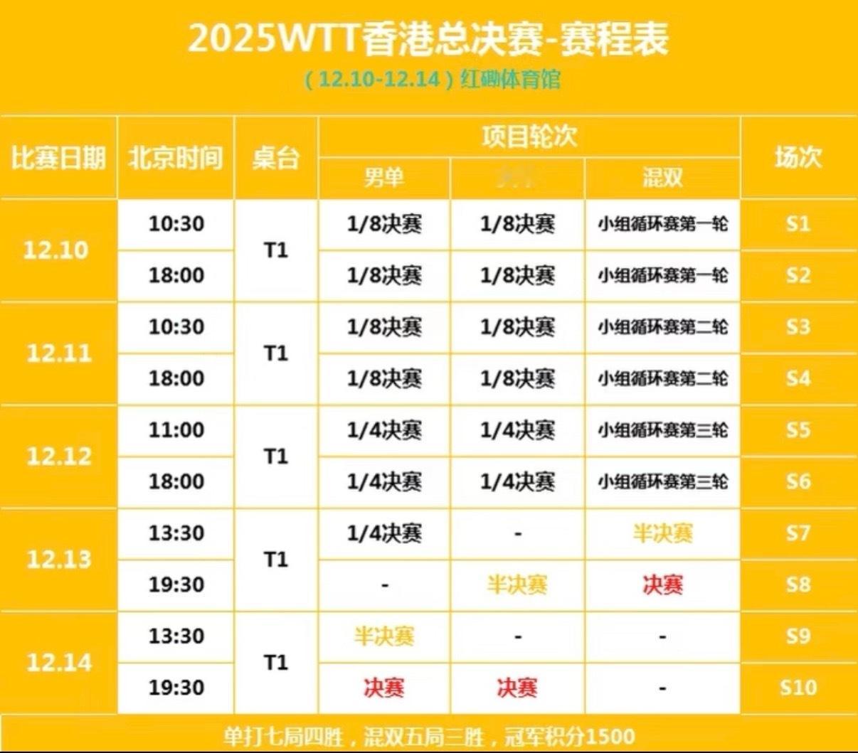 2025WTT香港总决赛赛程及名单,12.10至12.14WTT香港总决赛倒计时2天王楚钦说搭档孙颖莎做得非常出色