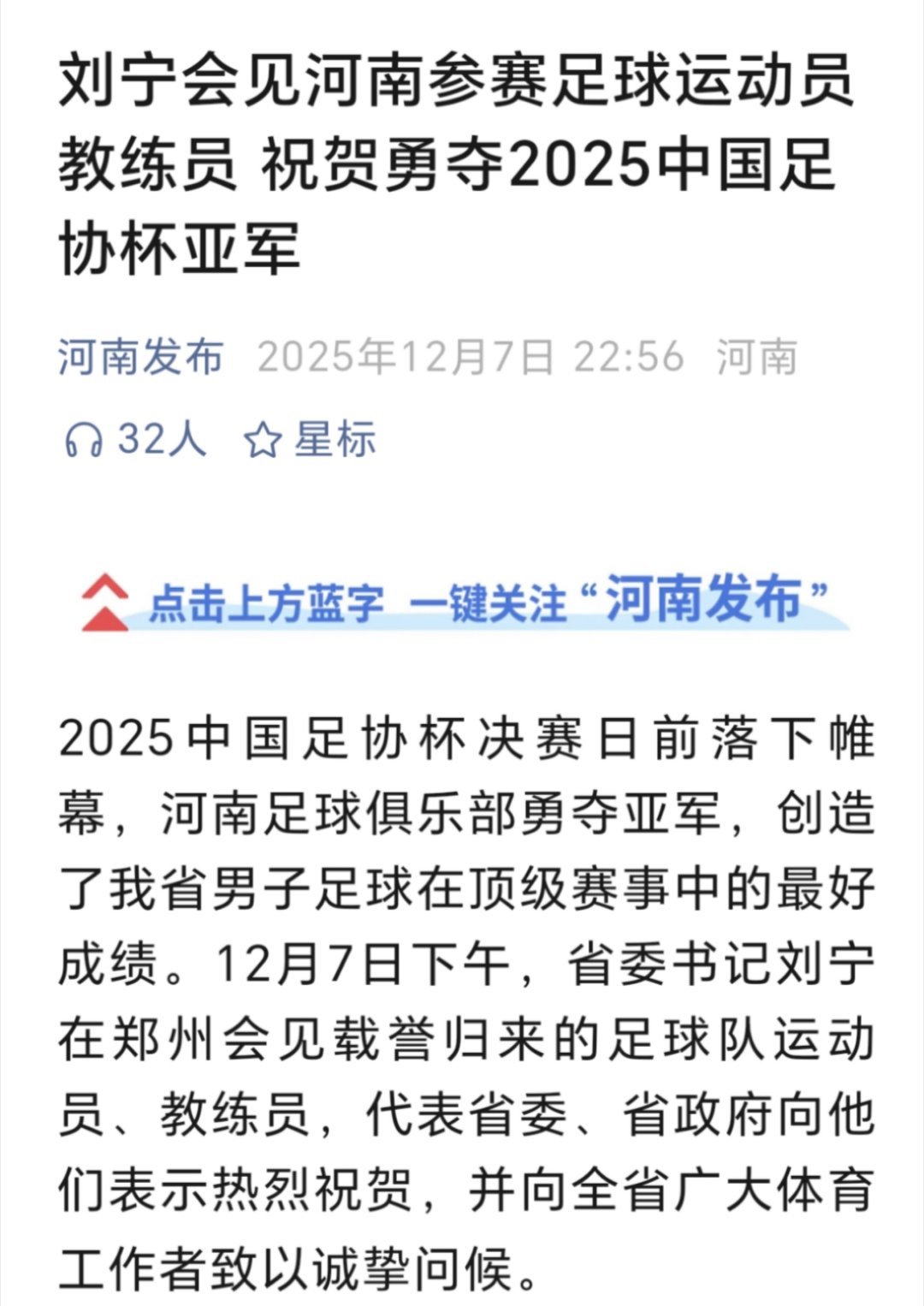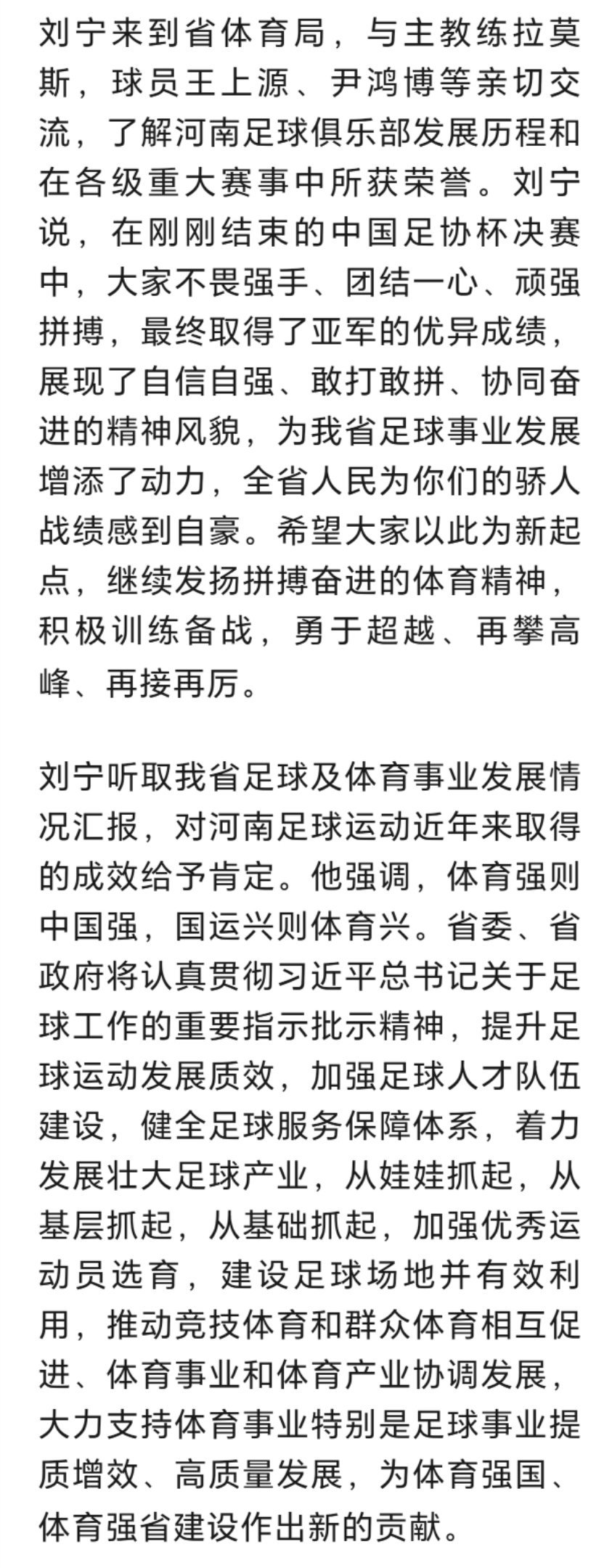 省委书记亲自会见,河南足球这不是好起来了嘛。北京这边对冠军也得加大支持力度啊。中国足协杯足协杯决赛