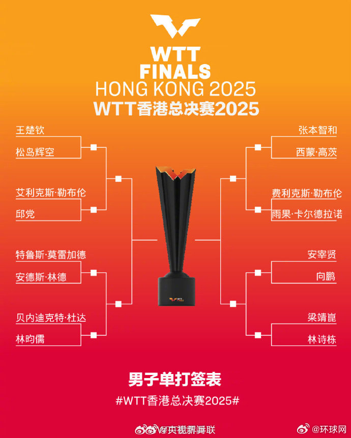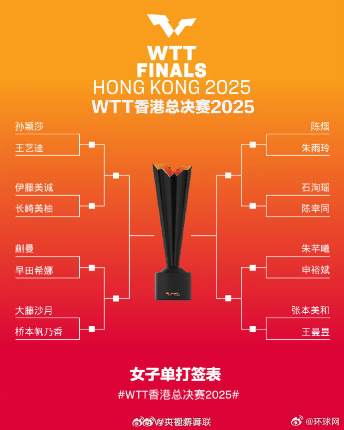 #WTT总决赛签表#【为国乒加油!#2025WTT香港总决赛签表出炉#】12月10日至14日,WTT香港总决赛将举行。今天,男女单打、混合双打签表出炉↓↓一起为、、蒯曼、陈熠、、、、、向鹏、、等中国运动员加油!赛场见!(央视)