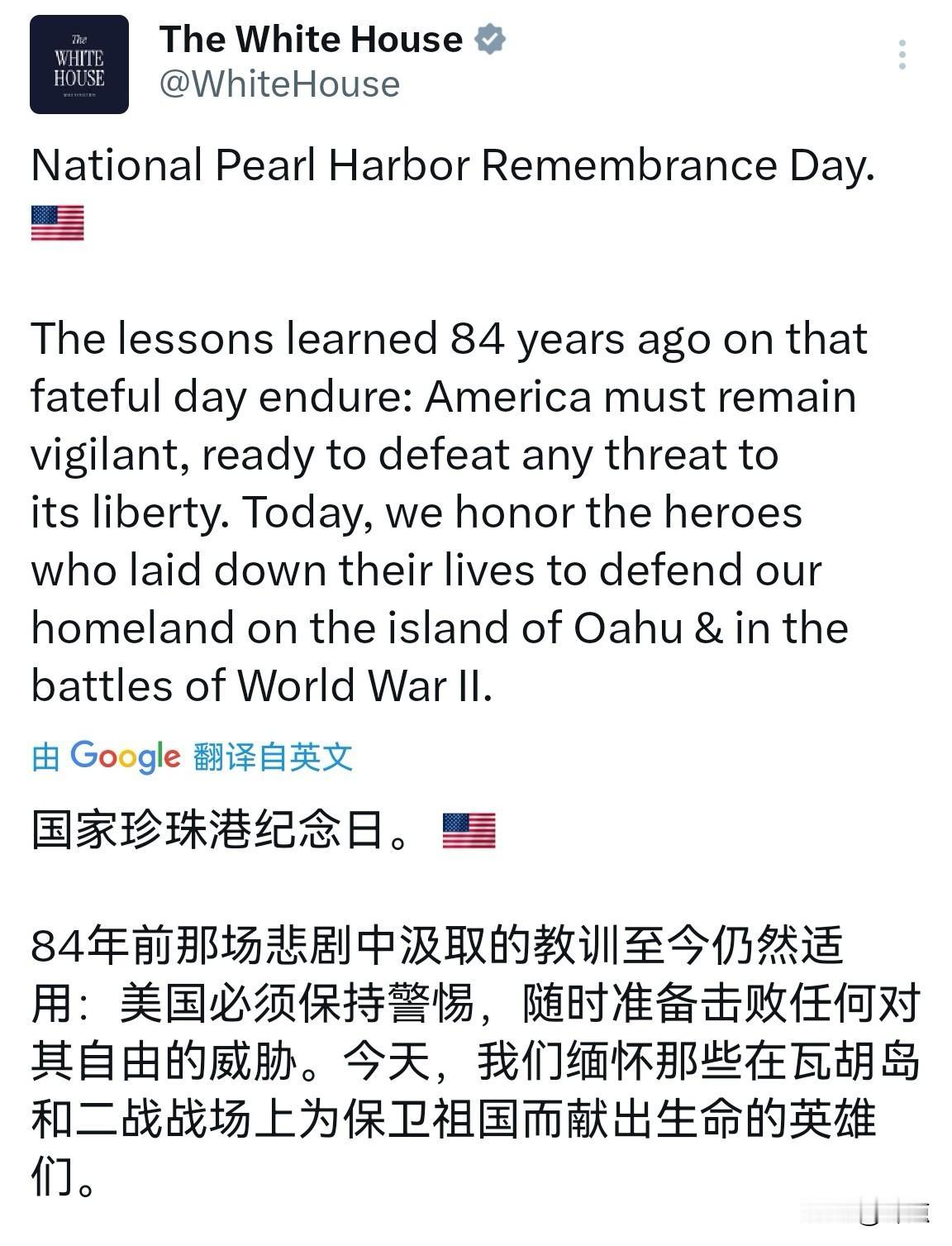 美国还在纪念“珍珠港事件”,美国没有打算忘记这段历史,不知道有没有人打算劝一劝美国放下仇恨、原谅小日本、向着“明亮的未来”共同前进? 比如新加坡那位“理中客”。 你甚至看不到一个日本人出来“跳一下脚”。而且怎么没有一个日本人说“珍珠港事件”是美国杜撰出来的……