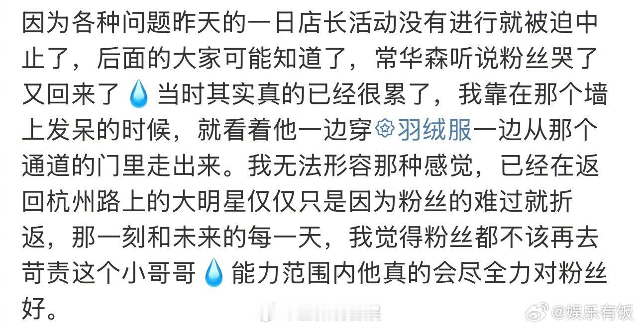 常华森因为粉丝哭了返回活动常华森因为粉丝哭了折返 看了粉丝发的repo才知道,原来活动被迫中止、已经在返程路上的,听说粉丝难过就立刻折回来了。好温柔的人