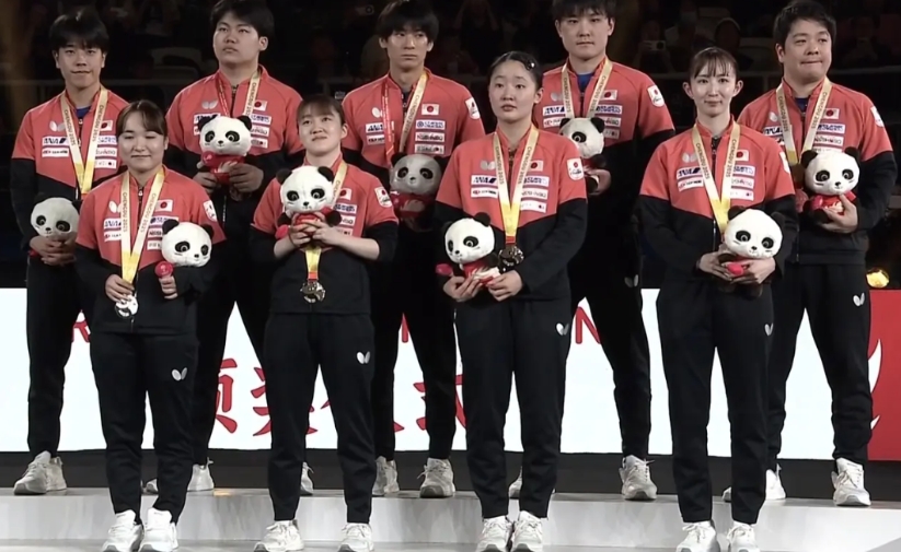 日本队拿了亚军还不高兴,颁奖的时候一个个板着个脸,一脸严肃的样子。被中国打了个8:1,让你赢一局给你点面子,要是上王楚钦都是8:0了。实力碾压,又不是惜败,拿个亚军已经很不错了。看看第三名的德国队,多开心,比拿了冠军的中国队都开心。日本队心胸开阔一些,跟德国队学学。