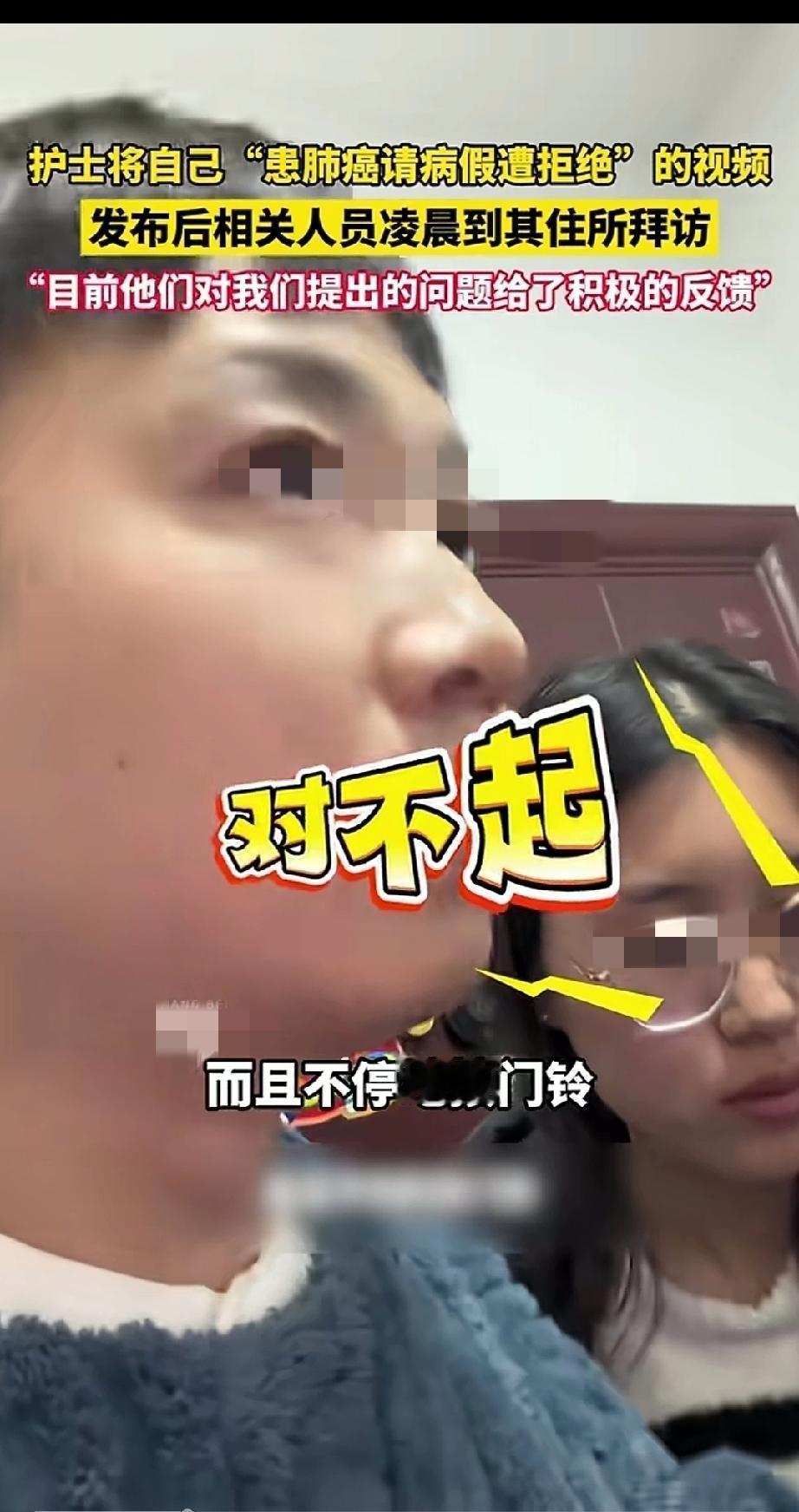 护士发患肺癌无法请病假的视频后,凌晨12点半被不停敲门。 有的护士患肺癌请不了病假,有的护士一个月全国奔波跑五六趟马拉松。。。。 我想说,不管什么工作,当他开始伤害你身体的时候,不要在乎什么稳定,工资,身份,体面了,没了身体,这些一切都没有任何意义! 很多人都忘了工作的初心,那就是让自己能尽可能更体面的享受生活。