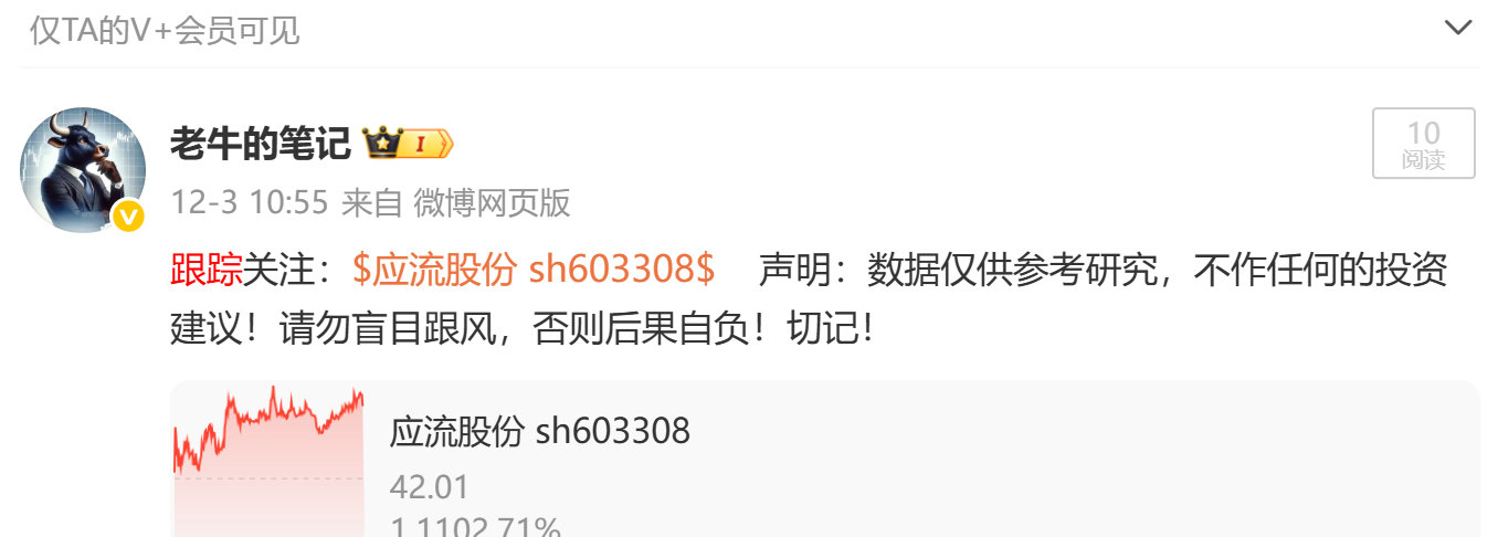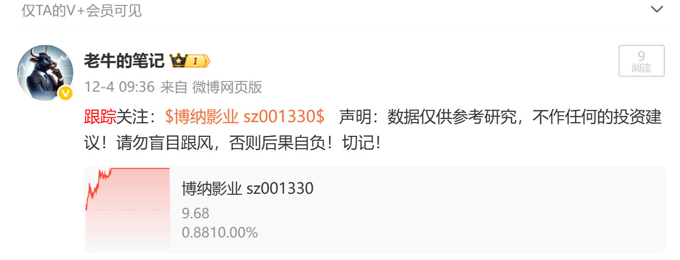 别在震荡中焦虑!告别盲目投--资!跟上老牛,抓准市场风格切换!老牛帮你稳住投资节奏!12月2日早盘跟踪关注的:飞沃科技 301232 今日收获20cm涨--停!虽然没有封住,但也是大丰收!12月4日早盘前分享的跟踪关注:宁波色母 301019 今天水下逆势拉升!12月3日跟踪关注的:应流股份 603308 已经连涨四天了!12月4日早盘跟踪关注的:博纳影业 001330 今天也收获了涨--停!12月4日跟踪关注的:航天动力 600343 今天继续收获涨--停!两连板了!12月4日跟踪关注的:华虹公司 今日盘中一度来到116元! 12月5日跟踪关注的:光莆股份 300632 今天也是大--涨!11月24日早盘跟踪关注的 安妮股份 002235 今天复盘也迎来了一字板!一份信任,一份收获!实力无需多言!认可老牛实力的朋友,来一波 点赞评论 888 ! $上证指数 sh000001$