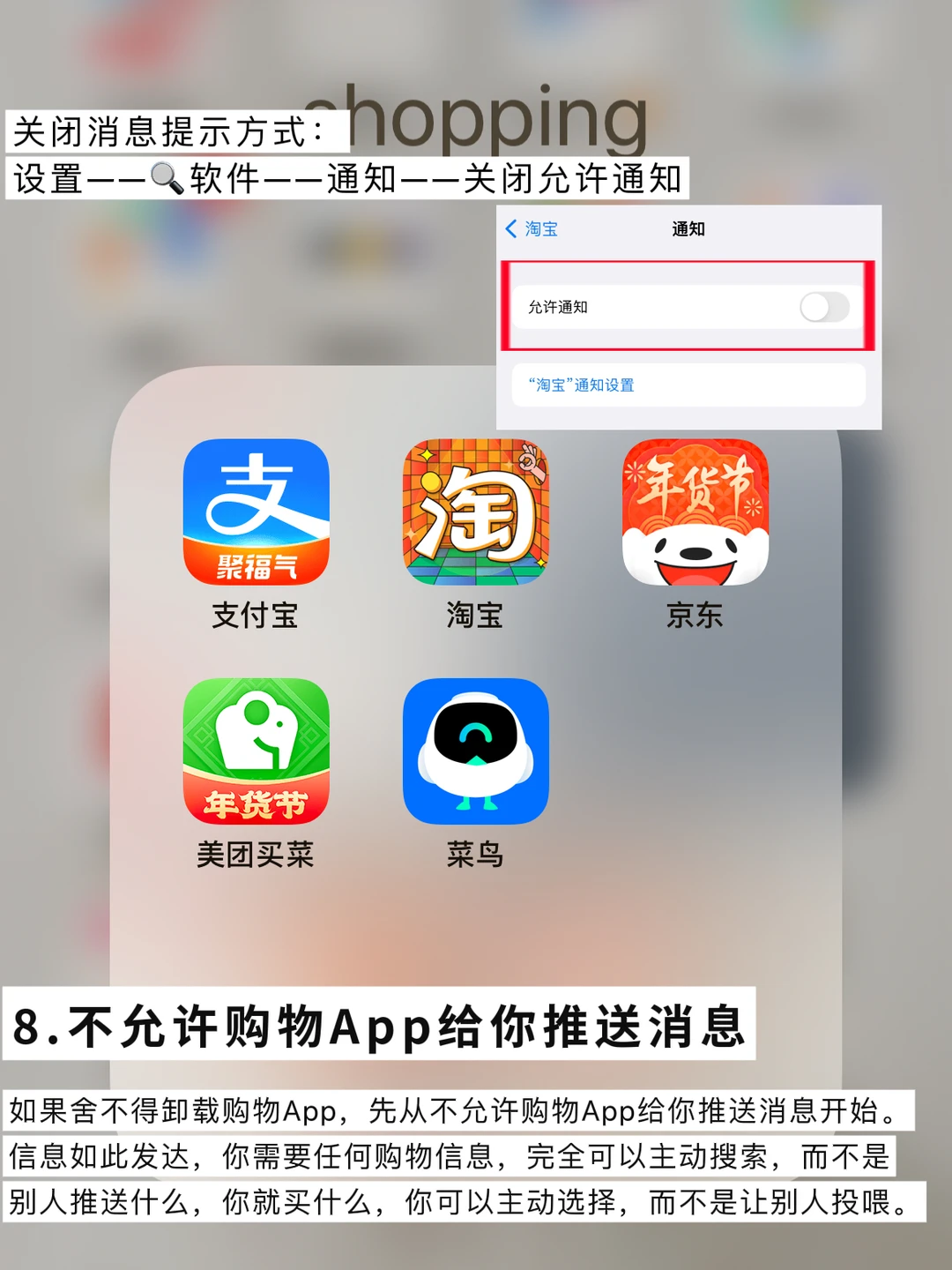8⃣️不允许购物App给你推送消息。