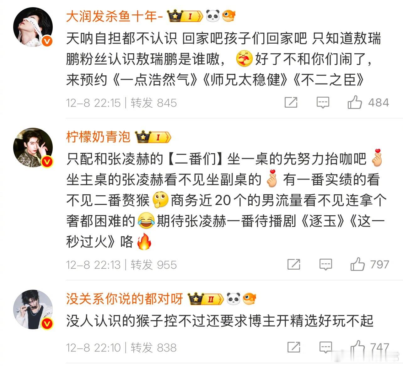 张凌赫粉丝和敖瑞鹏粉丝交流起来了,因为尖叫之夜有人对着敖瑞鹏喊张凌赫敖瑞鹏被喊