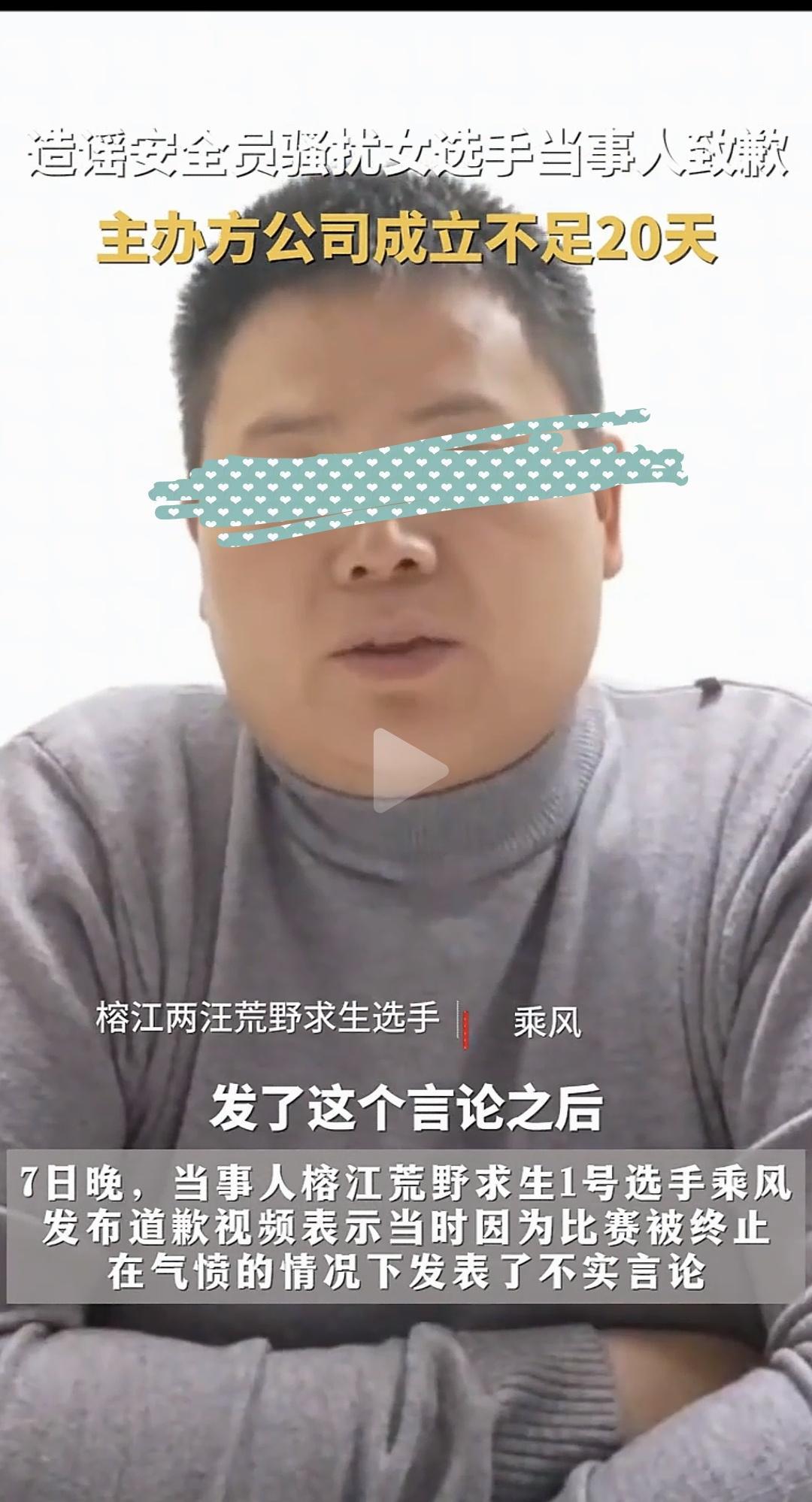 辟谣!根本没有安全员骚扰女性。 榕江荒野求生当地最新通报情况,和网络上视频里看到的不一样。那个说亲眼看到安全员摸女选手的当事人也出来道歉了,说是一时气话。 这种比赛发展到现在,很多有心人目的已经不是拿冠军,而是希望借荒野求生这个机会由专业公司团队培养成网红。 因此,可能存在很多炒作行为,大家多加辨别! 榕江荒野