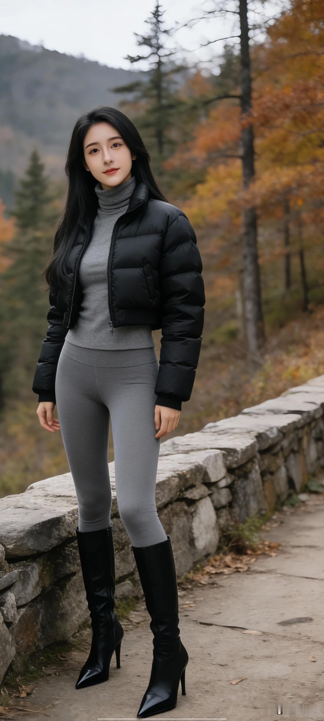 秋日穿搭指南:保暖羽绒服+紧身裤+高跟靴,时尚又保暖!