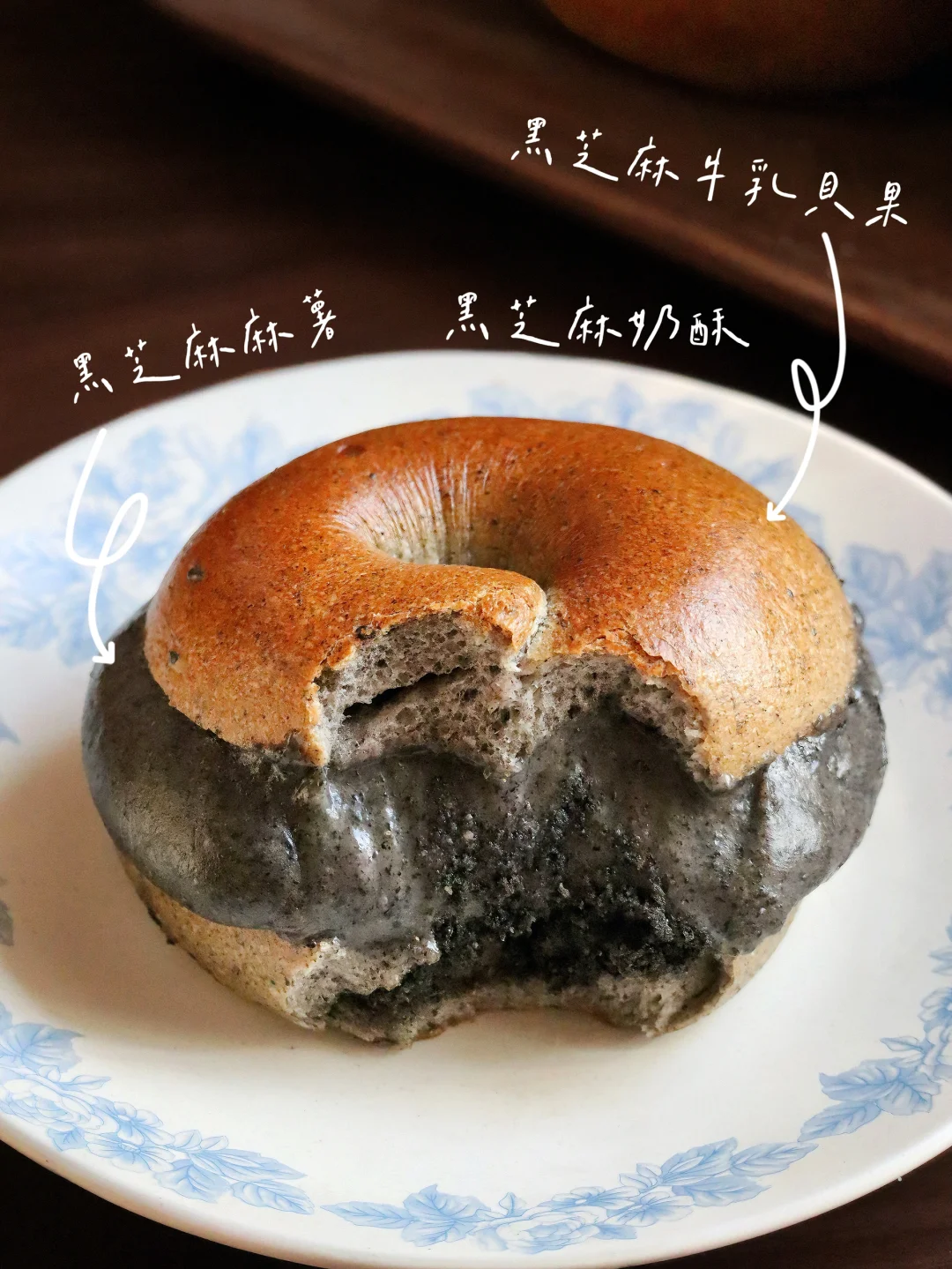 椰香黑芝麻贝果+超厚奶酥+浓郁黑芝麻牛乳麻薯