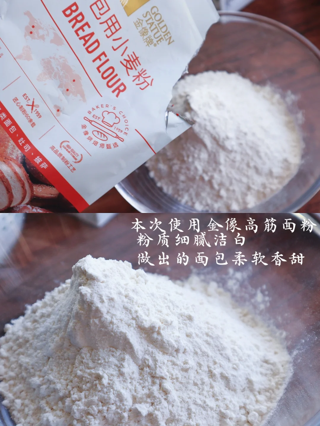 📎新手记得选金像这种醒发简单、吸水量大的面粉,做出来的面包会更加柔软