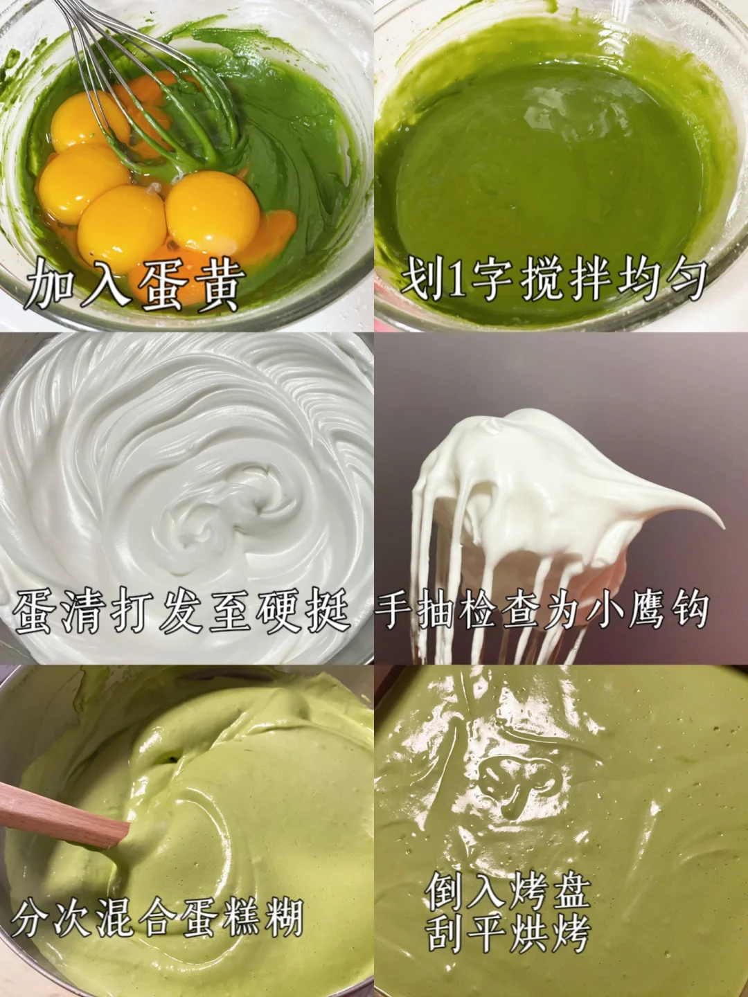 抹茶戚风卷:玉米油40g|牛奶70g|低筋面粉65g|抹茶粉10g|鸡蛋5个|细砂糖55g|柠檬汁2g