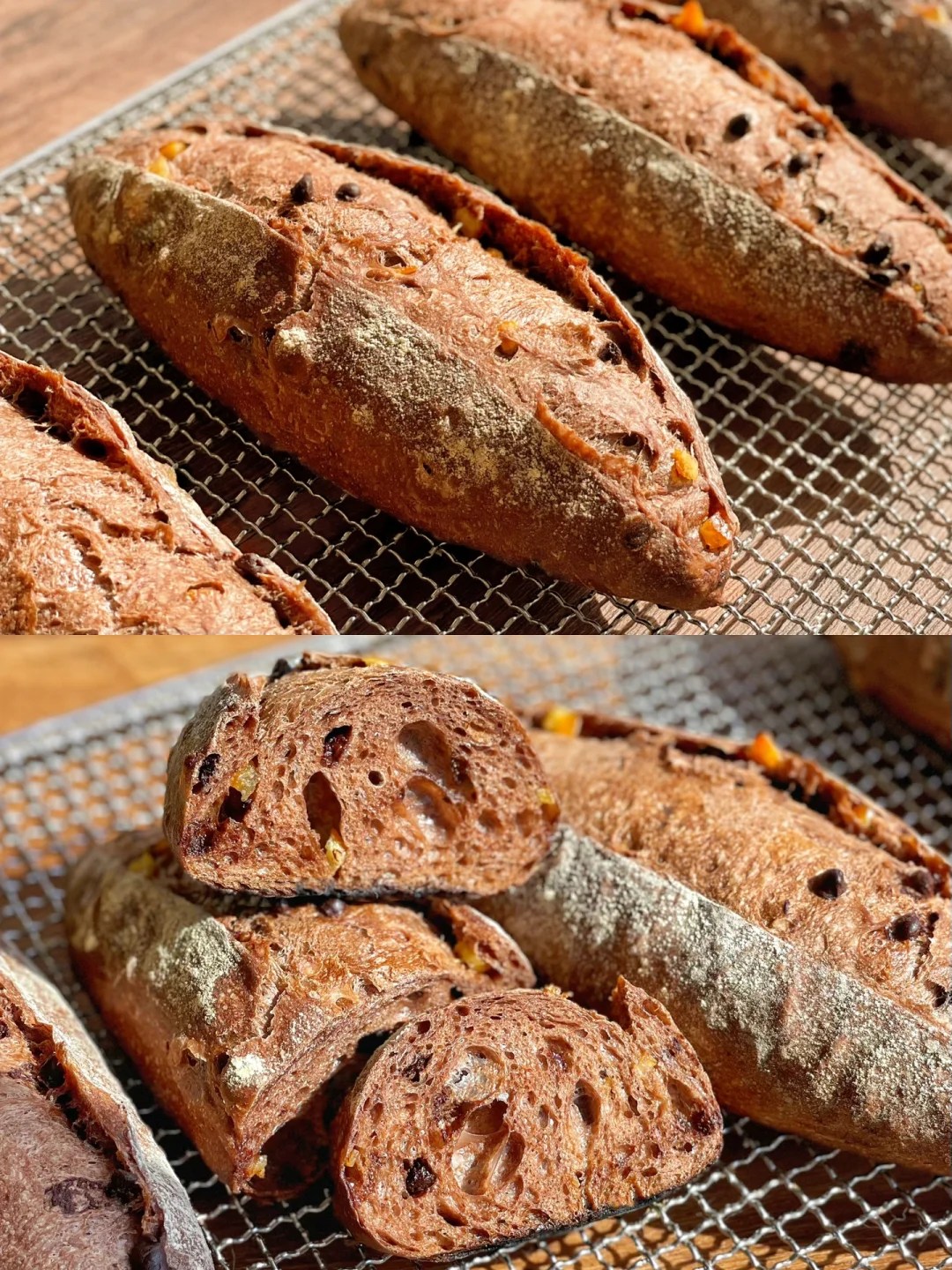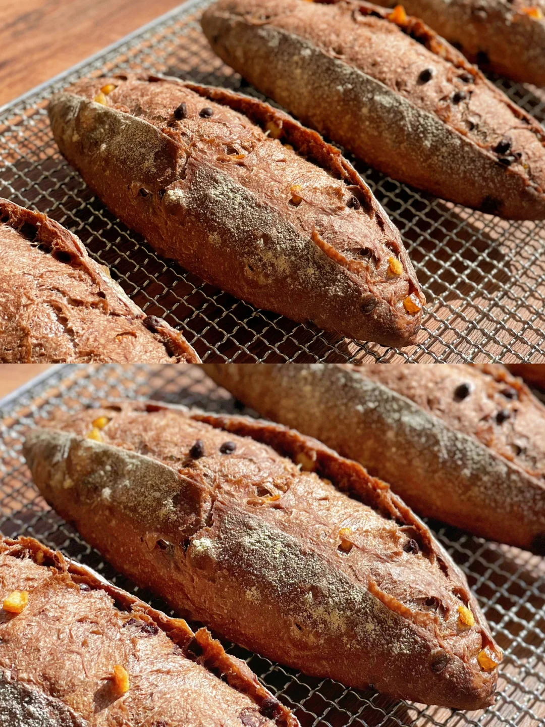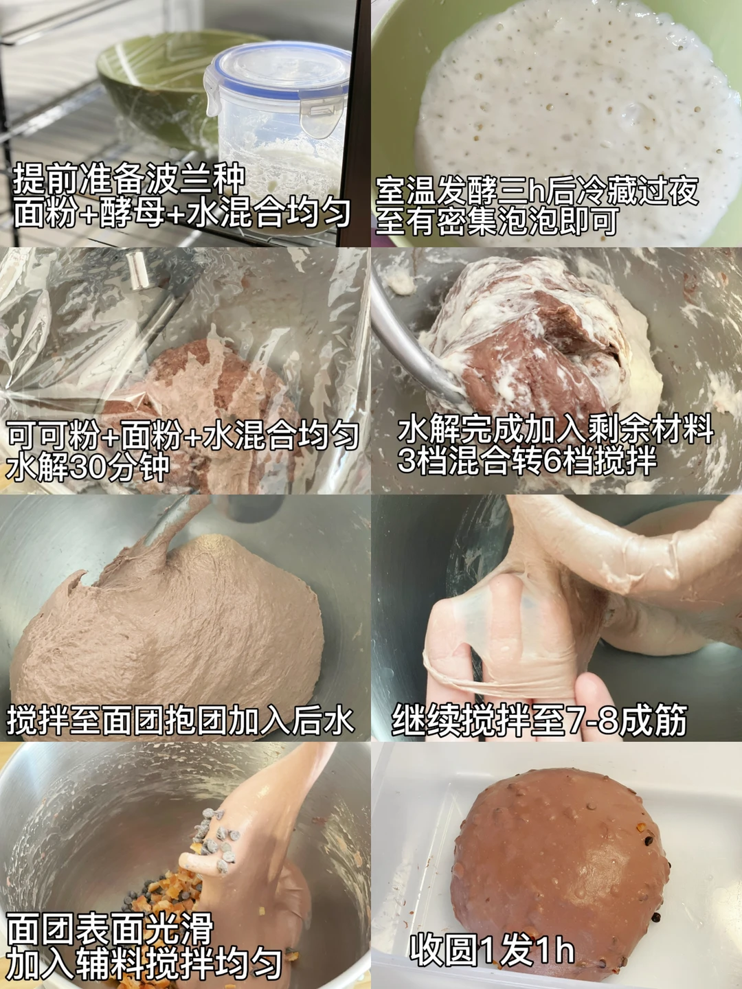 🥣主面团:高筋面粉230g|低筋面粉100g|干酵母1g|海盐6g|可可粉15g|水200g|后加水20g(如果面团太湿则不加)