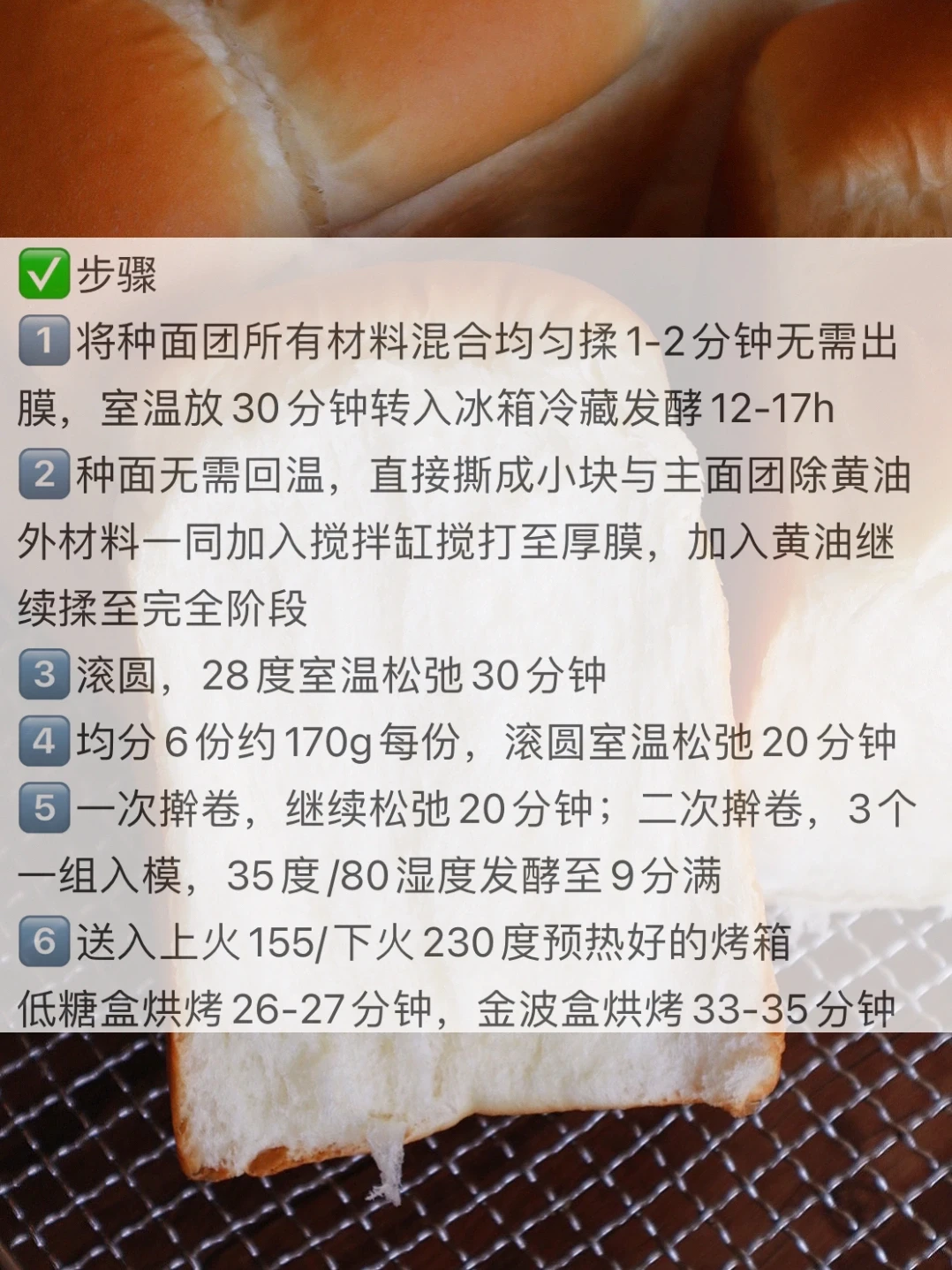 🥣主面团:高筋面粉400g|耐高糖干酵母4g|盐7g|糖25g|奶粉16g|冰牛奶230g|淡奶油120g|炼乳28g|蜂蜜24g|黄油25g|老面75g